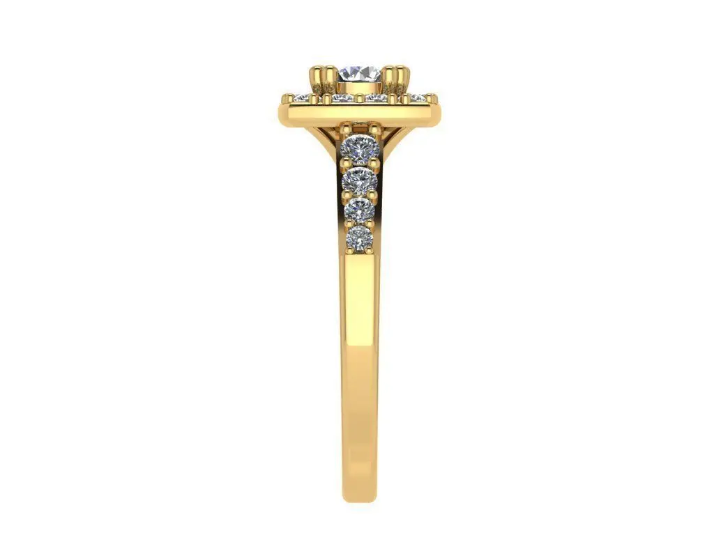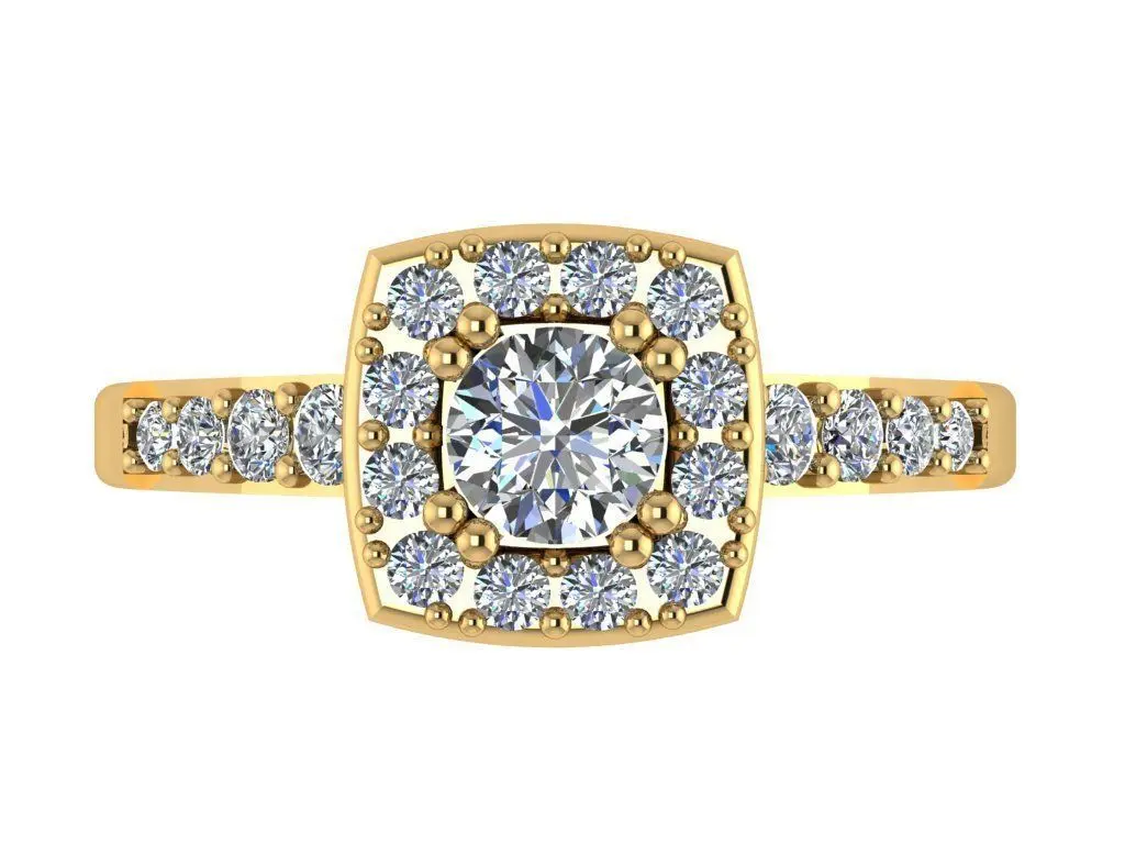 The halo ring is a setting that encircles a center gemstone in a collection of round pavé or micro-pavé diamonds. These pavé stones flash with light and focus attention back on the center stone to create interest and draw people's gaze to your ring. Halos add extra glitz and glimmer to any ring, and clearly, they are fit for a princess. Not only are they versatile and easy to customize, but this setting can actually make a diamond appear as much as half a carat larger than it actually is. Traditional brides won't be able to resist the sparkly round-cut diamond center framed by a halo of diamonds and a glistening diamond band.