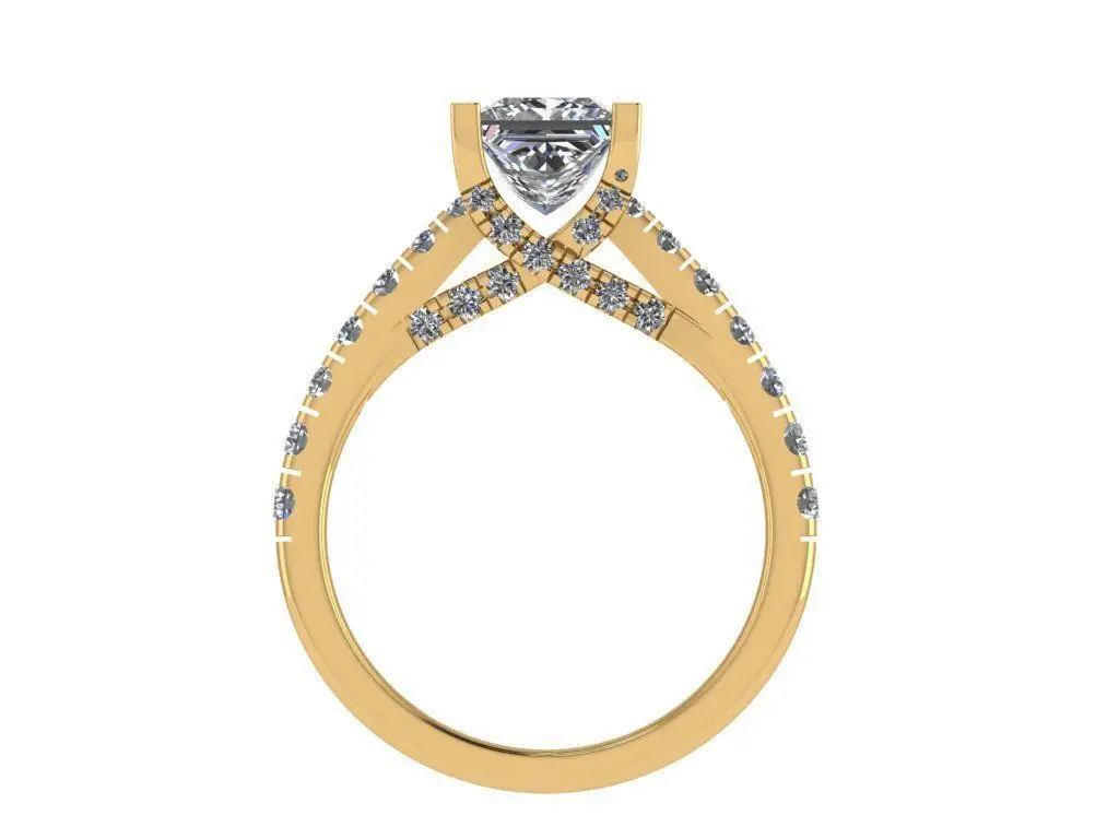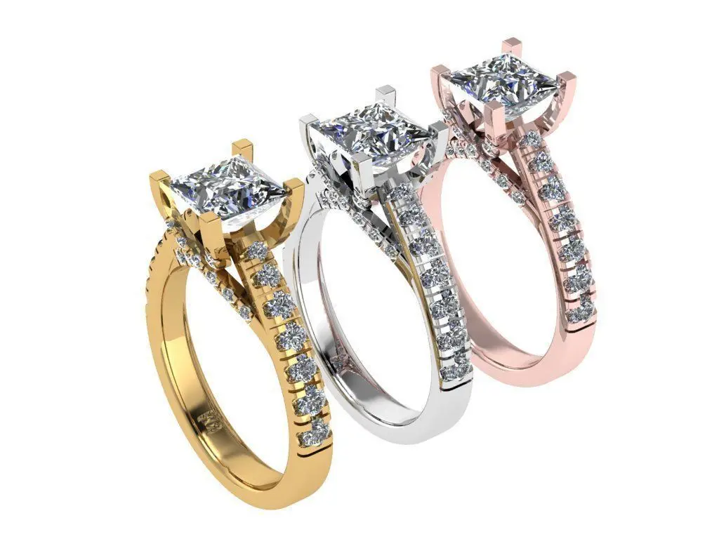 Princess cut diamond engagement rings possess the same brilliance as a round diamond but in a sleek square shape. Princess cut rings have been compared to round engagement rings so often that they are sometimes referred to as “square modified brilliants”. This design is classy and timeless. For lady who prefered elegance, this diamond stone will be the right choice. With bold shank full of diamonds, and diamonds among the head of the ring, this ring catches the light from every angle. It never goes out of fashion, so you'll always love it.