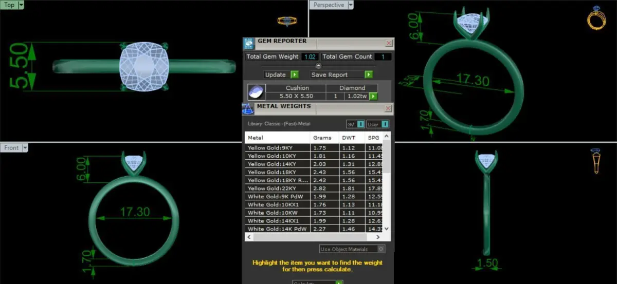 This is a 3D printed RING model. Stone parameters and gold wieght are shown in the picture. Exported file with extension (.3dm). If you have any problem, please contact me , it is nice to work with you.