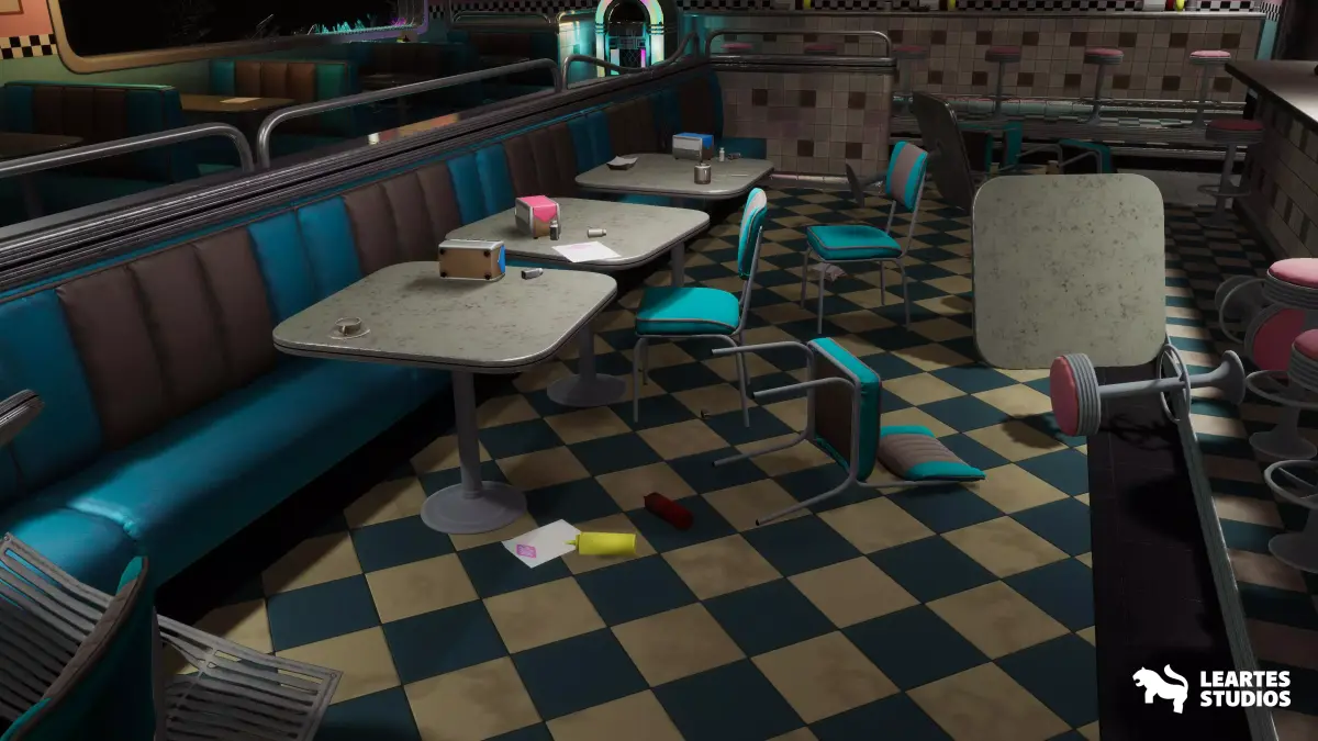 Rino's Diner Environment with 147 Unique Meshes. Including all showcased assets, and high-quality assets. With a good level of detail and optimized for Game Ready Projects.