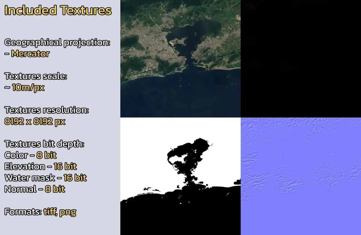 - Textures resolution: ~10m/px