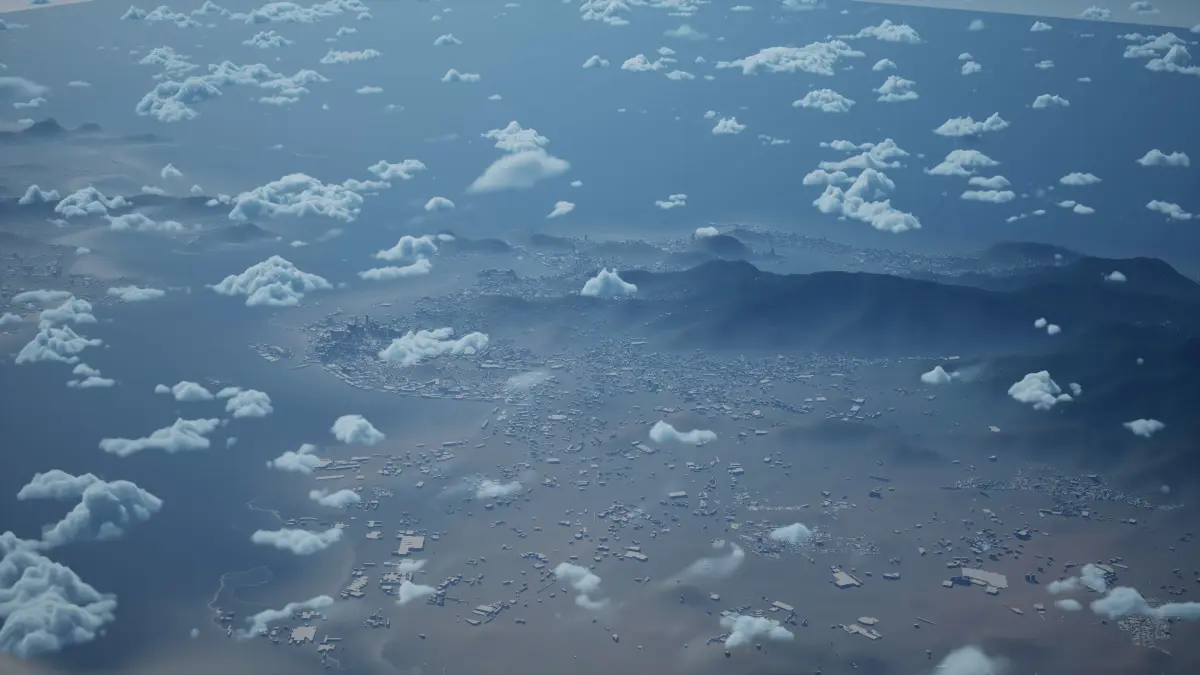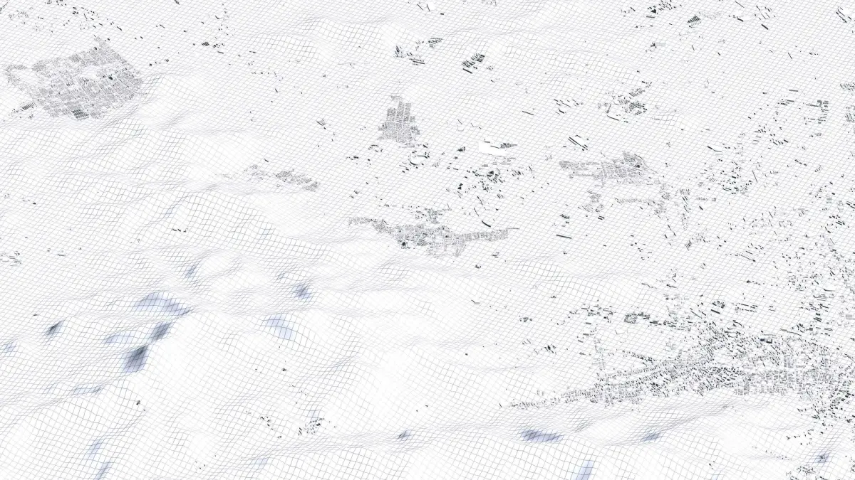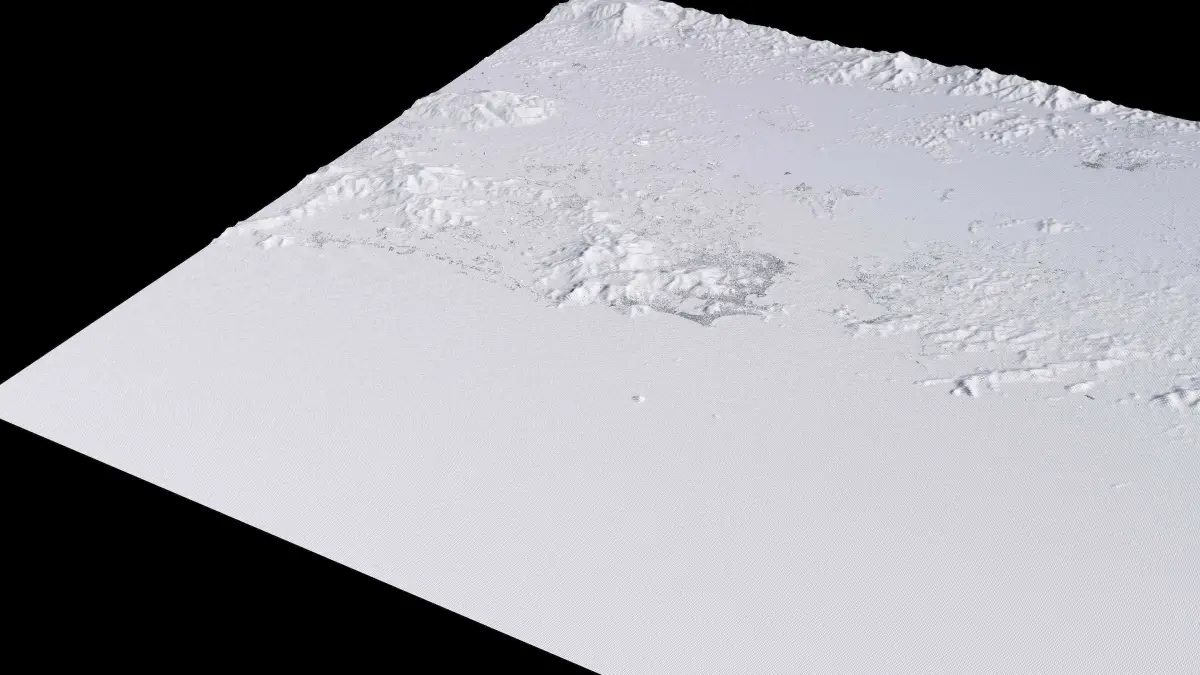 Originally created in Houdini 19. Final images rendered in Houdini. Data source is ASTER GDEM V3, ASTER WATER V1, Open Streep Maps 2022, Copernicus Sentinel 2016.