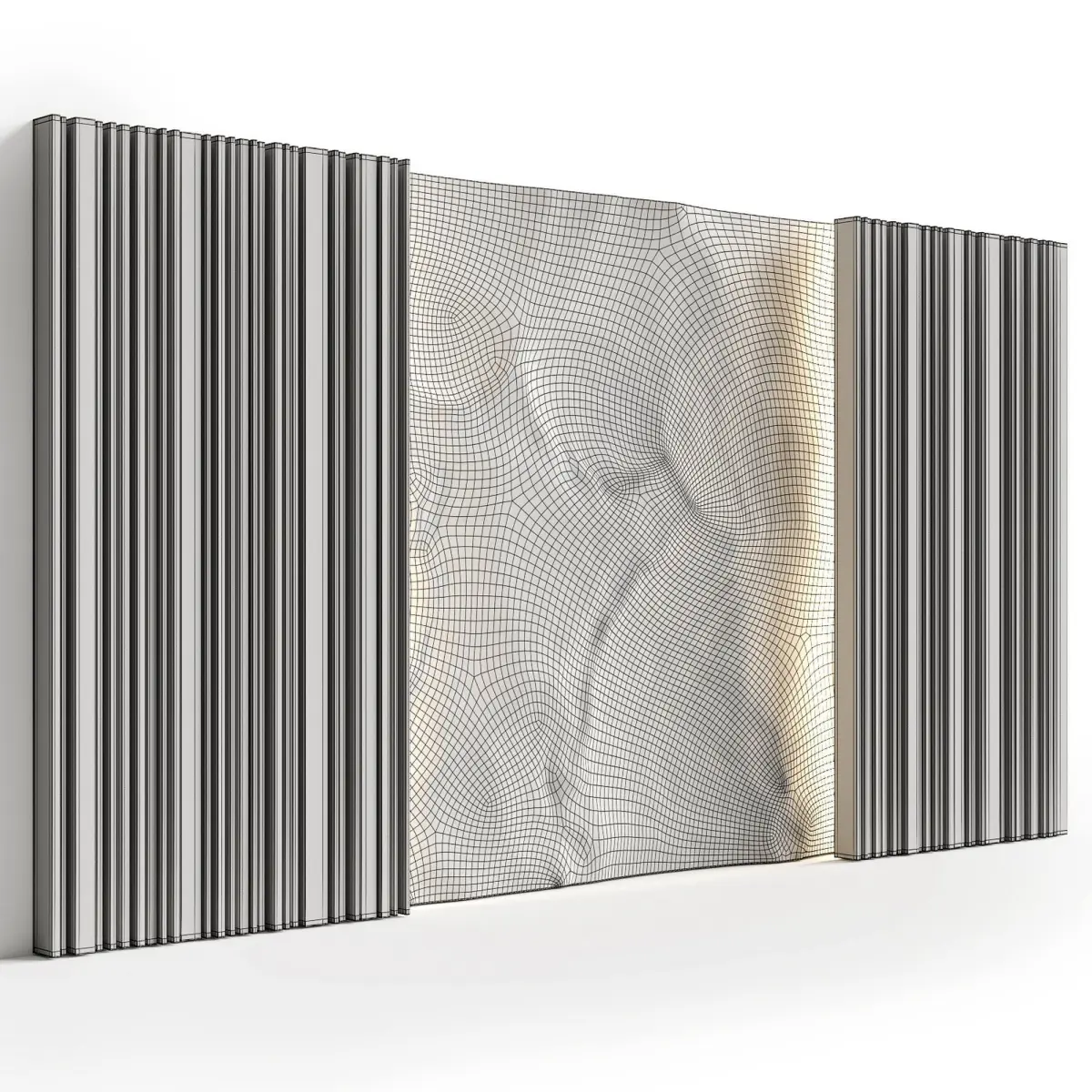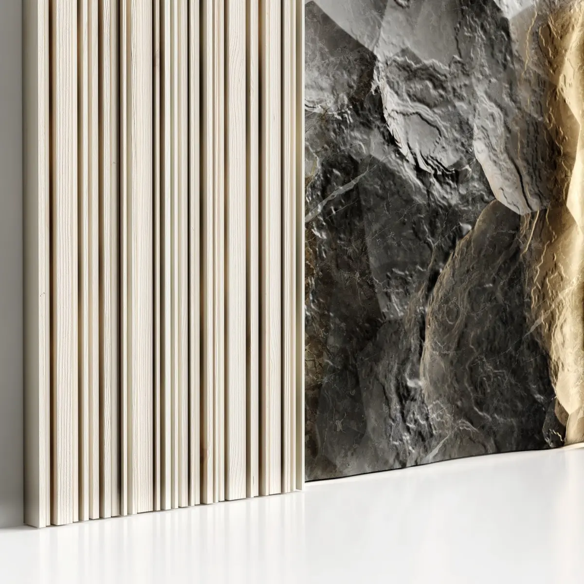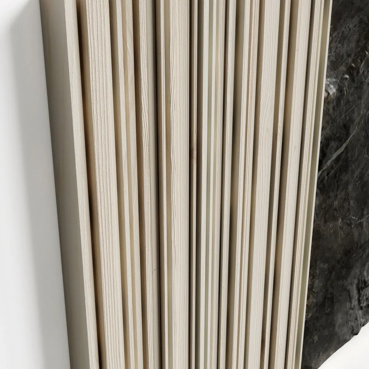 Decorative panel made of slats and stone surface