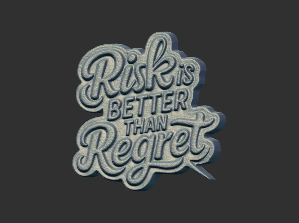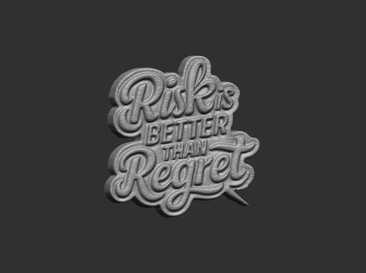 The image displays the text Risk is better than regret in a stylized, three-dimensional font. The text is presented as a motivational quote, suggesting that taking chances is preferable to living with the regret of inaction. The quote encourages embracing uncertainty and potential failure as opportunities for growth, rather than avoiding them and later feeling remorse. The design of the text has a sculpted or embossed appearance, giving it a tactile and visually appealing look. This type of quote is often used to inspire people to step out of their comfort zones and pursue their goals, despite the fear of failure.