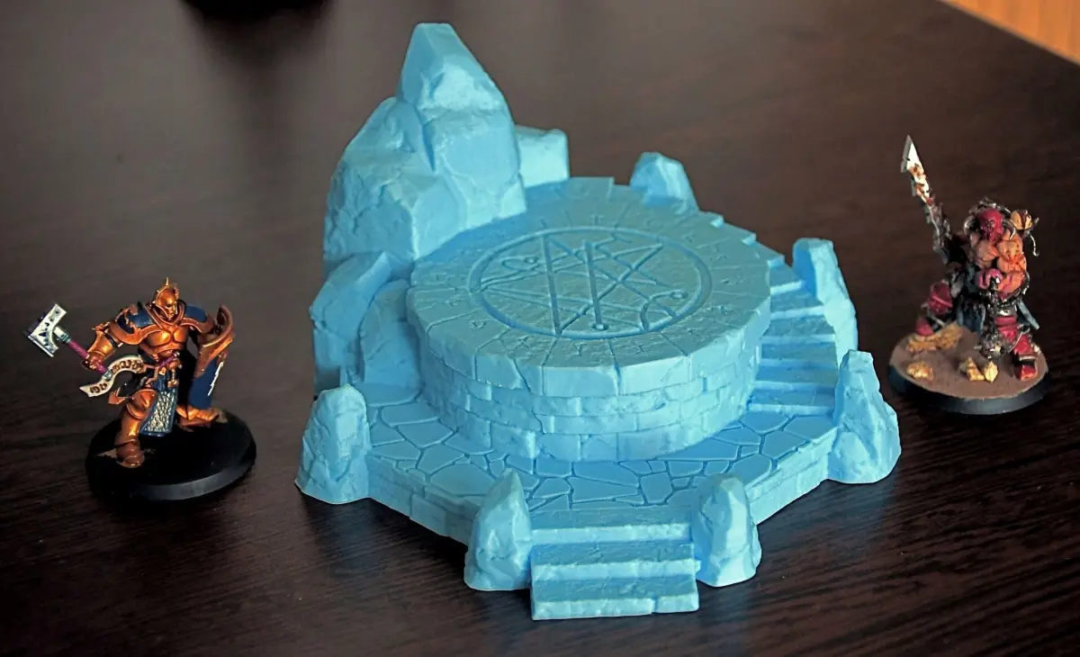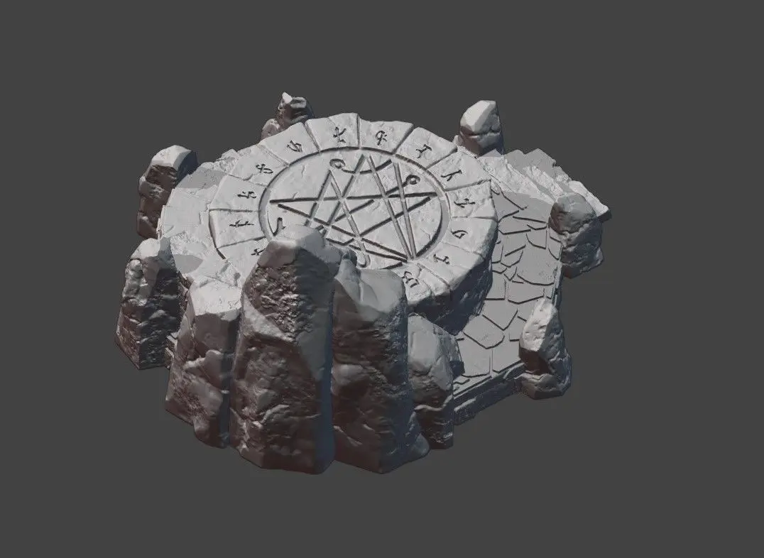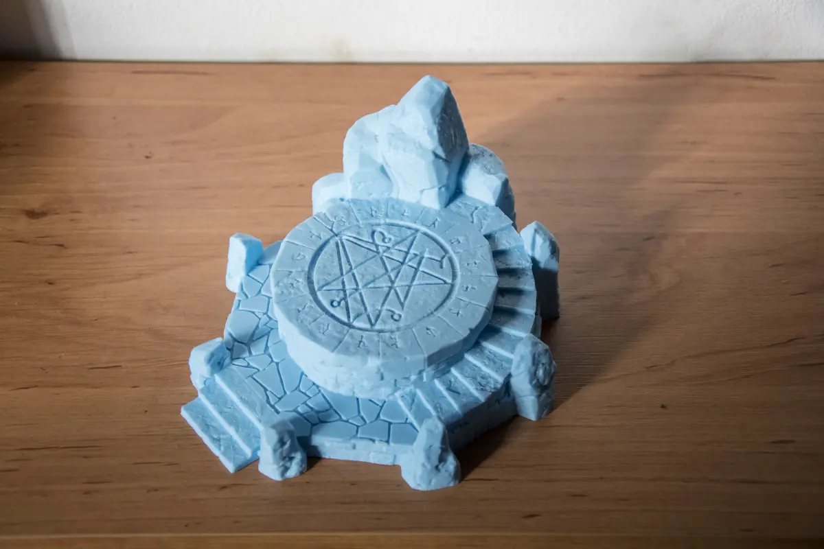 Ritual altar for tabletop games. I made it for my own fantasy tabletop wargames sessions. It served as a mission objective or conquerable scenery.Printed by a FFF printer. You can print it by a more advanced technology ofcourse.Dimensions in mm: x:156, y: 140, z:80.3