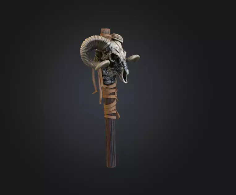 The Tribal Ram Skull Totem is a striking 3D prop designed to evoke ancient rites, primal mysticism, and the raw symbolism of forgotten cultures. Featuring a beautifully sculpted ram skull with intricate carvings etched into the bone, this totem carries an air of mythic reverence and ominous warning. The skull’s sweeping horns frame its detailed structure, creating a powerful silhouette that immediately draws attention in any scene.