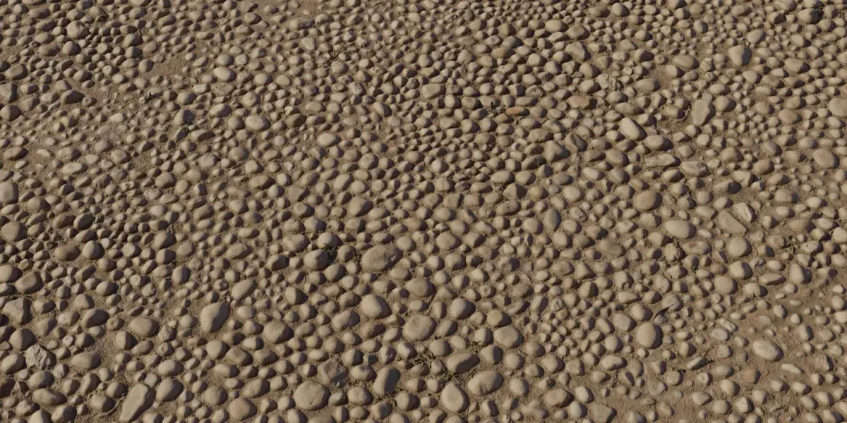 This River Pebble Setts PBR set features tightly set rounded pebbles of varying sizes embedded in compacted sand, delivering a natural footpath or courtyard look with smooth, water‑worn stones. Subtle size gradation, random orientation, and shallow sandy grout keep tiling from repeating, while micro‑pits and edge wear hold up in close‑ups. Delivered as seamless 4K maps—BaseColor, Normal (OpenGL), Roughness, Height/Displacement, and Ambient Occlusion—calibrated for PBR in Blender, Unreal, Unity, 3ds Max, and Maya. Real‑world scale and clean tiling support expansive paths; use Parallax or Displacement to push pebble relief and joint depth, or keep Height lighter for performance. Roughness is tuned so stones read satin and sand stays matte; lower values create a wet, darker pebble sheen after rain. Optimized PNG/TIFF textures preserve crisp micro‑detail with efficient memory, and preview renders are included for rapid look‑dev.