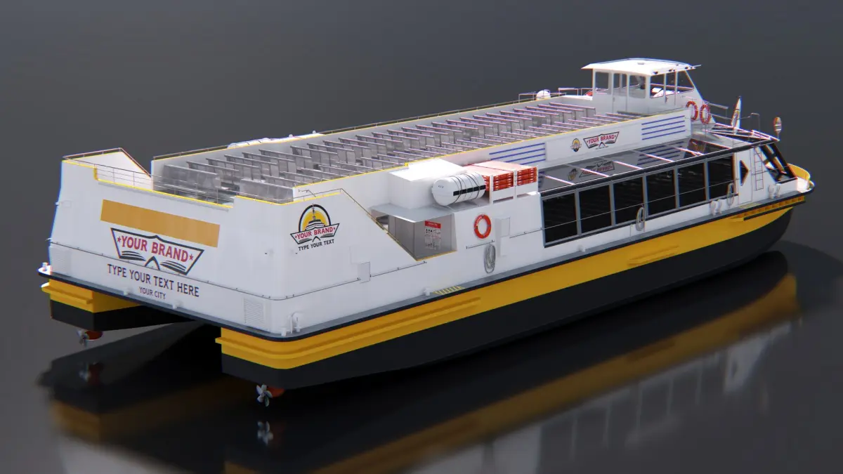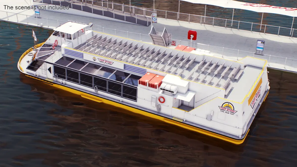 River Sightseeing Cruise Boat Mockup is a three-dimensional model of river sightseeing cruise boat, that is designed for scenic river cruises and commuter transport along urban waterways.