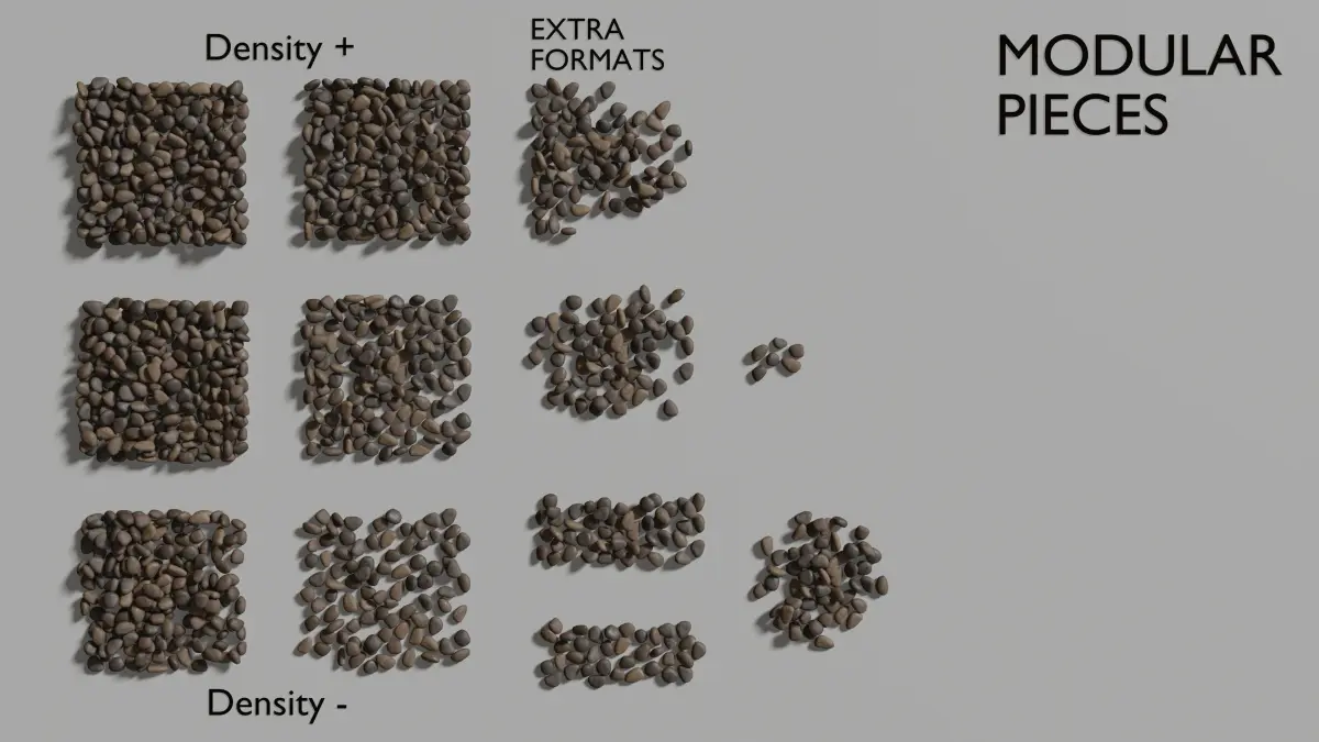 Comes with a Low-poly and a high-poly model of modular pebbles made in Blender 3.0