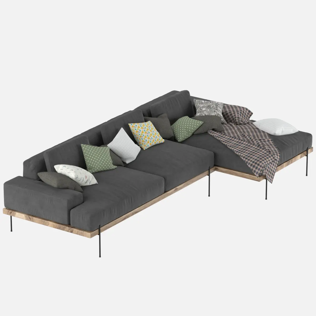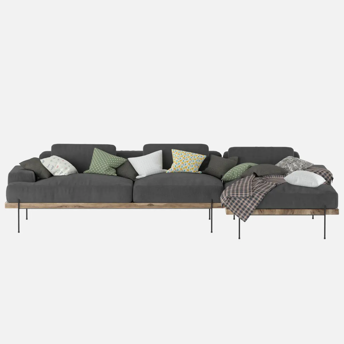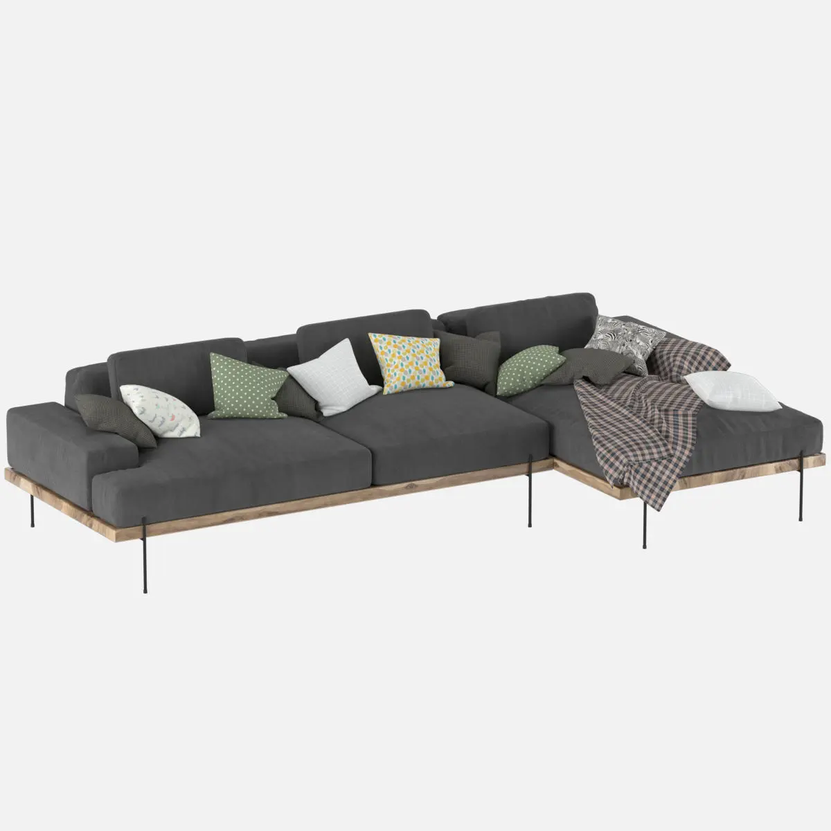 Modern minimal Sectional Sofa. Wooden base and rough iron legs. Realistic Model and Materials Using 3ds Max Studio and Marvelous Designer. Renderded With Corona Renderer 5. The model is highly accurate and based on original dimentions. Including .max, .obj and .fbx formats. No Camera, No Hdr in Scene. the lightining set up is not included. Just the main object and you don't need to delete any unnecessary objects, cameral or lights. Polys: 348266 Verts: 174540 Model Parts: 13 Dimension: 2097.84 x 1104.33 x 774.16 real life size. You can check out my profile for another version of this sofa and many more minimal models. Thanks for your concideration.