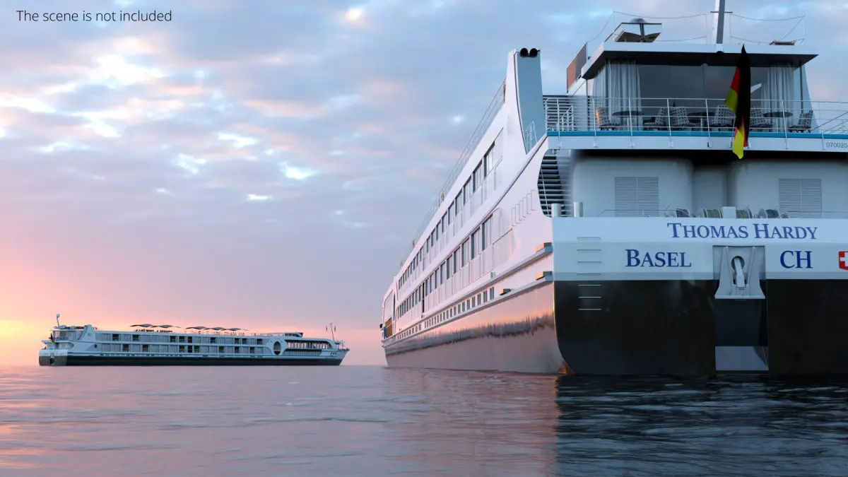 Riviera River Cruise Ship with Jacuzzi Deck White is a 3d model of a luxurious river cruise vessel, designed for leisurely travel along scenic waterways.