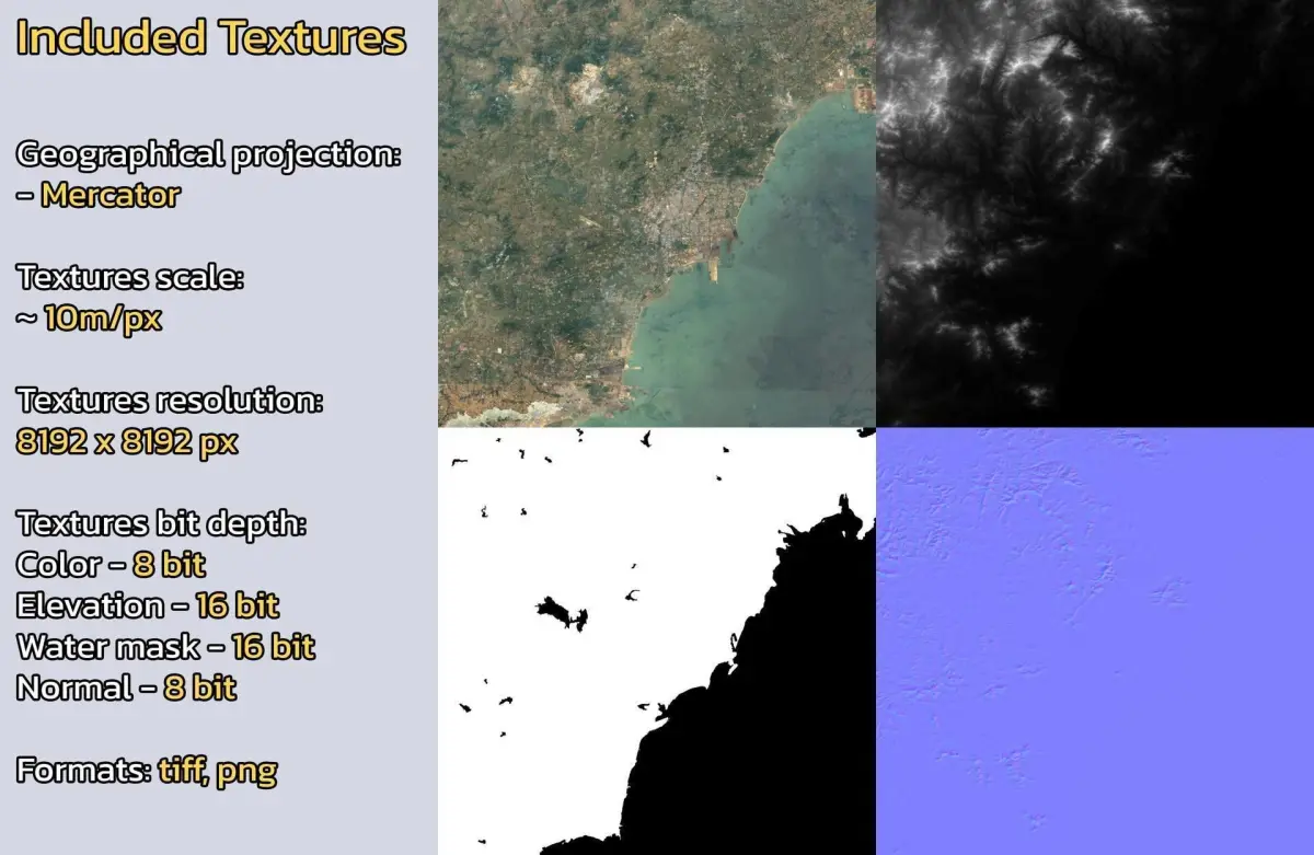 - Textures resolution: ~10m/px