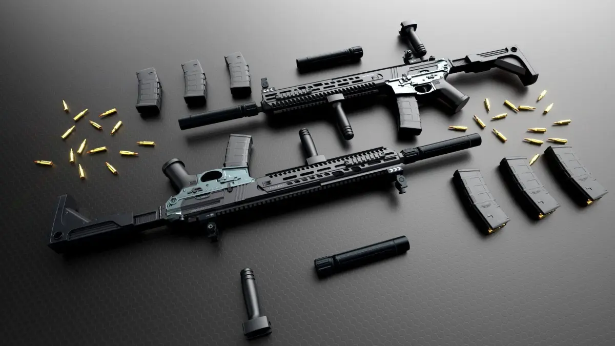 This is an original concept I created and not any real-world product. Therefore this can be used in games without having to worry about licenses for gun manufacturers.