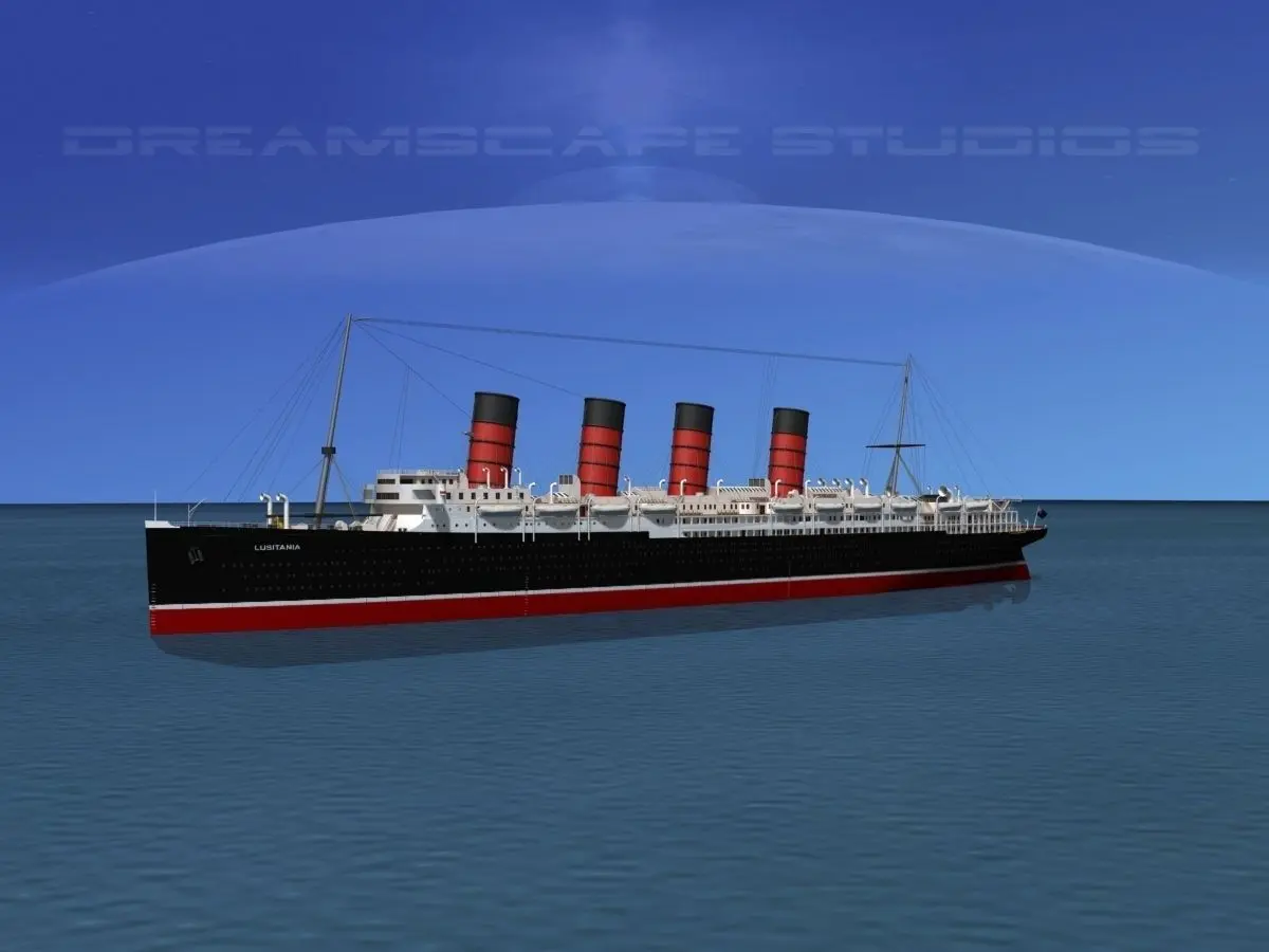 The RMS Lusitania was briefly the largest ocean liner in the world and hold of the Blue Riband. She was built in the early 1900s by the Cunard line and launched in 1906. She got passengers from Europe to the US and made 202 Atlantic ocean crossings.