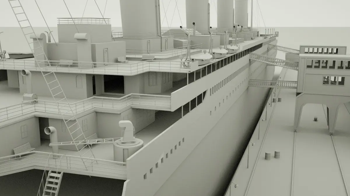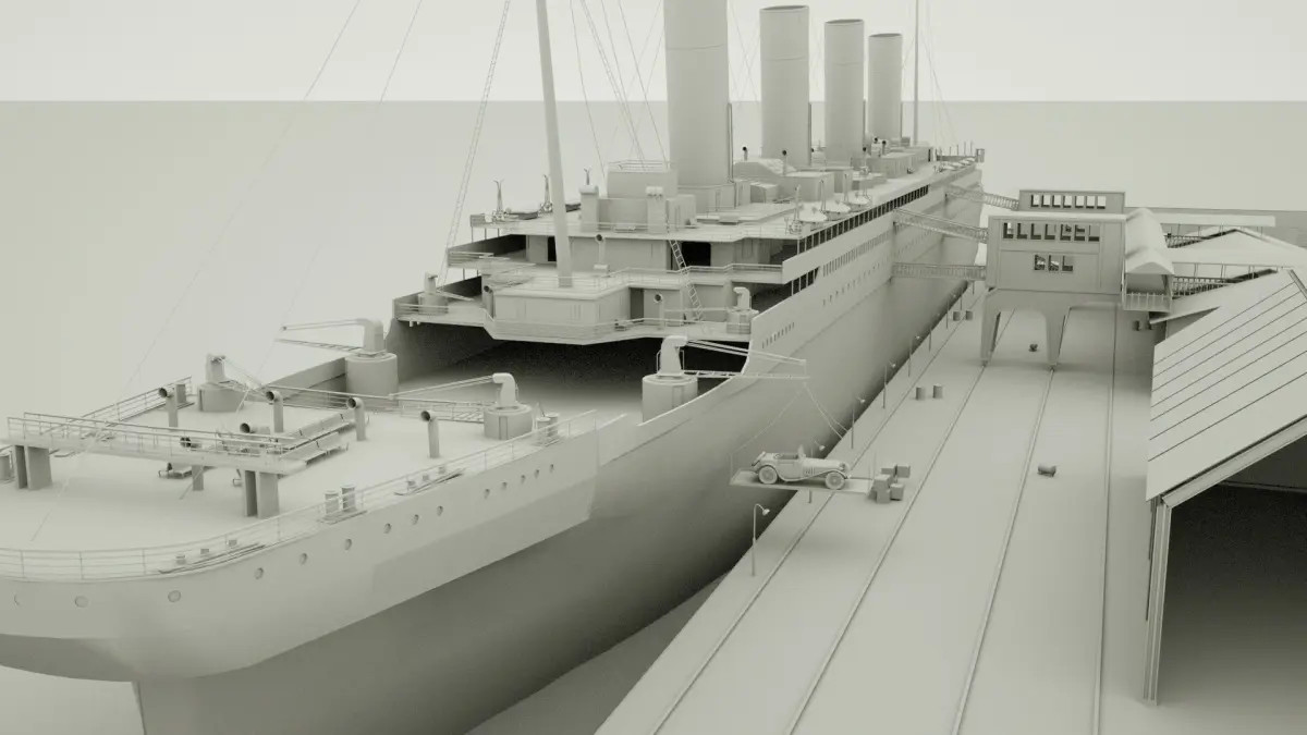 RMS Titanic. High detailed and port scene 3d Model (with claasic car 3d Model )C4d, Obj and fbx texture not included.