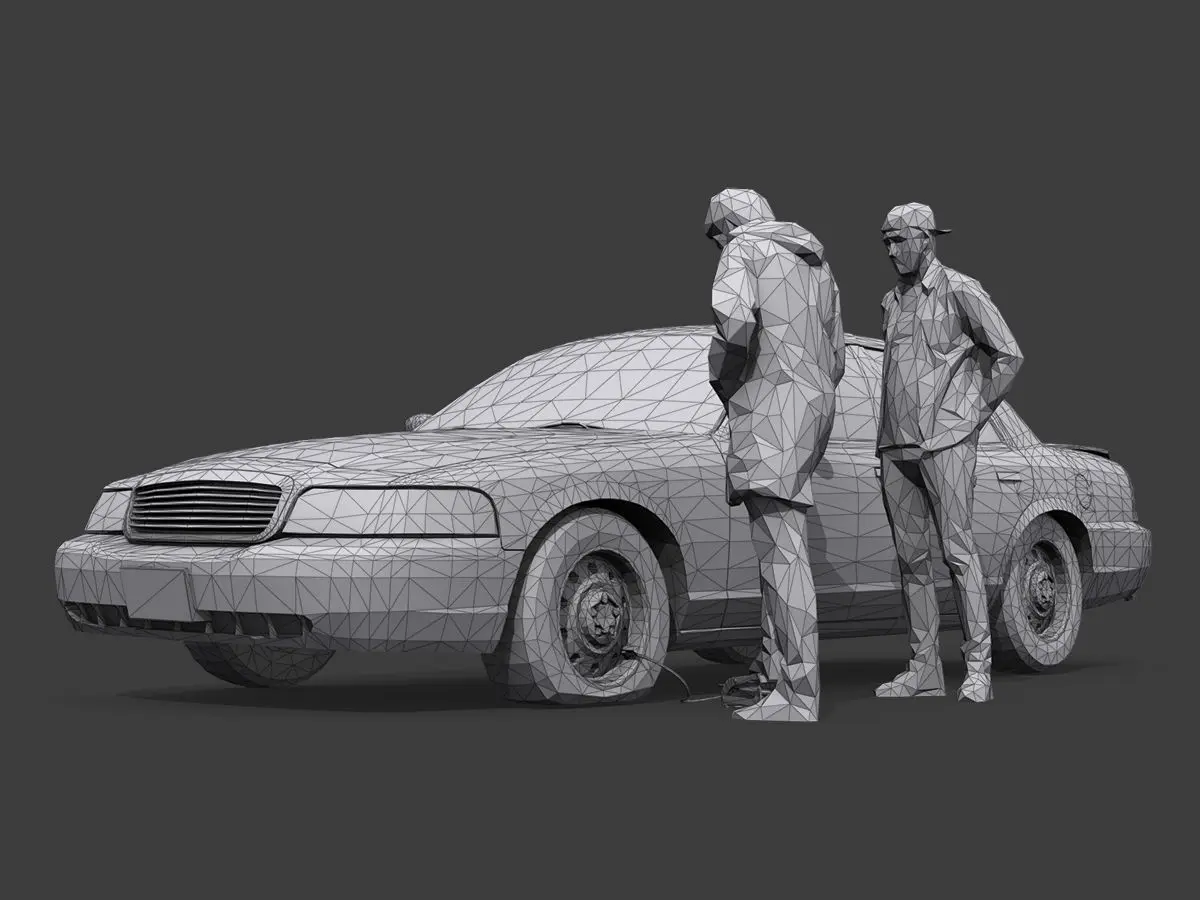 Lowpoly “Road Accident” 3d scene ready for Virtual Reality (VR), Augmented Reality (AR), games and other real-time apps.