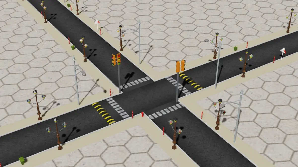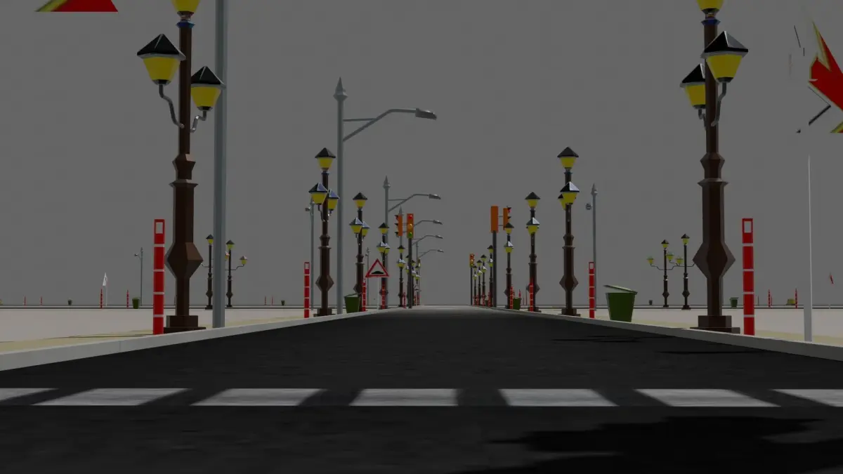 Road with assets lowpoly 3d model mode in blender.specially design for unity and unreal engine. This package; It includes assets that you can use for games, animations and other projects.