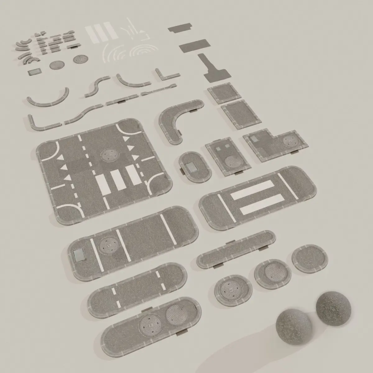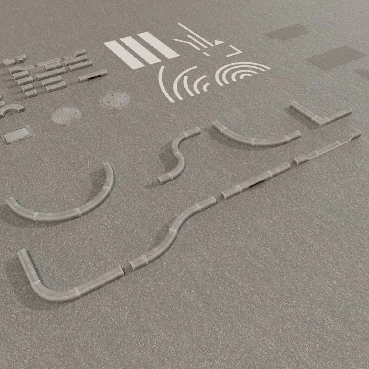 A collection of traffic island, Manholes & concreate parts to build new custom trafic scenes.