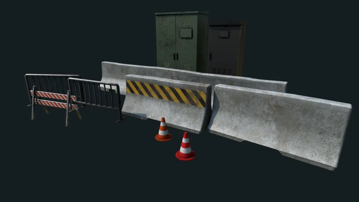3D Low-poly Road Assets modeled in Maya and textured in Substance Painter, ready for games.