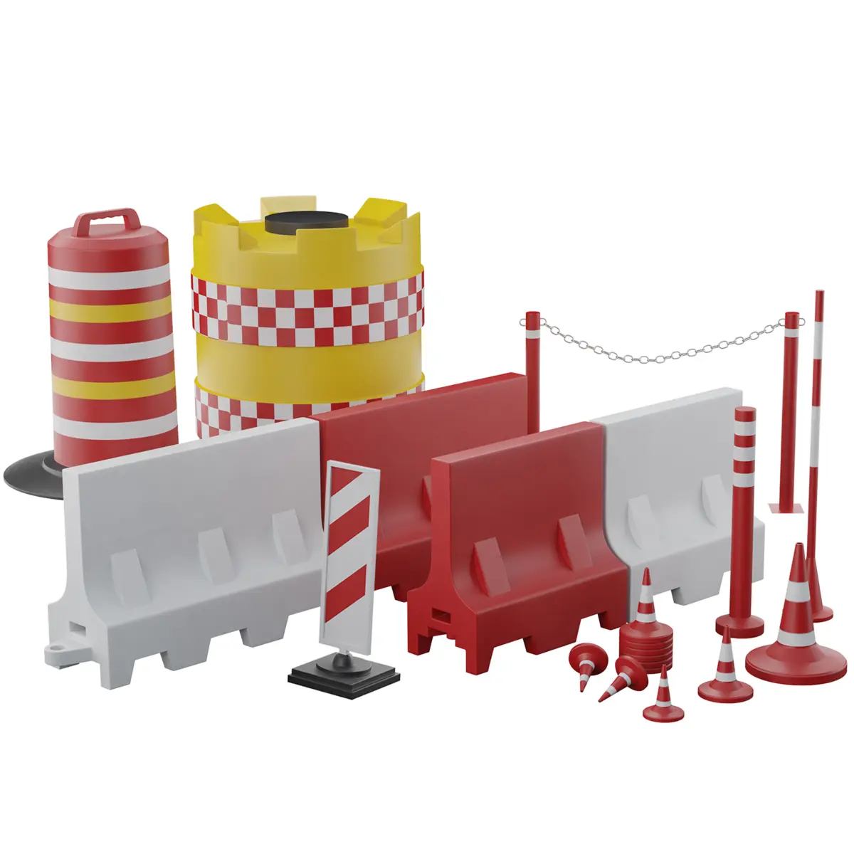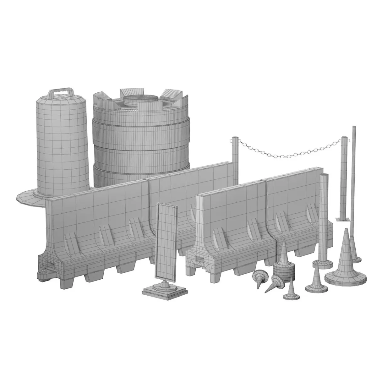 Modeled by size, the stack is not collapsed, the set includes:Road barrier 1.2/2mRoad axial separation bufferRoad signal cone bufferRoad barrier Soldier on a standRoad cone 320/520/750mmFencing milestone + coneSignal bollard to separate traffic flows