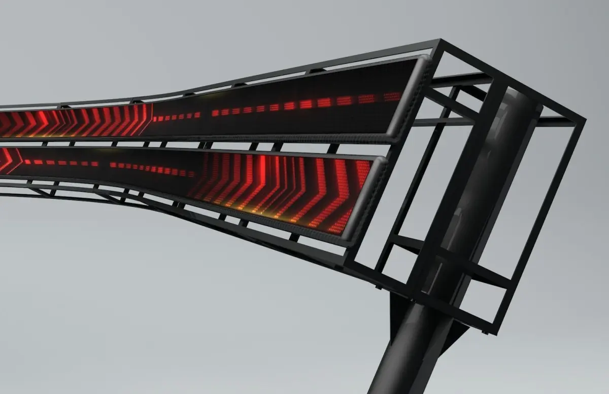 The billboard takes the shape of curvy roads, often seen in racing tracks. The billboard is easily customizable, simply place your texture on the luminance channel on the LED_Board material. The entire billboard also slides over a path that can be edited. To edit the path go to Spline Wrap modifier and change the offset and rotation banking. The posts also slide in a more limited range, please pay attention to the base and angle.Please be aware that textures are NOT included in the model, however, the materials are ready to be edited to be replaced with a billboard animation.