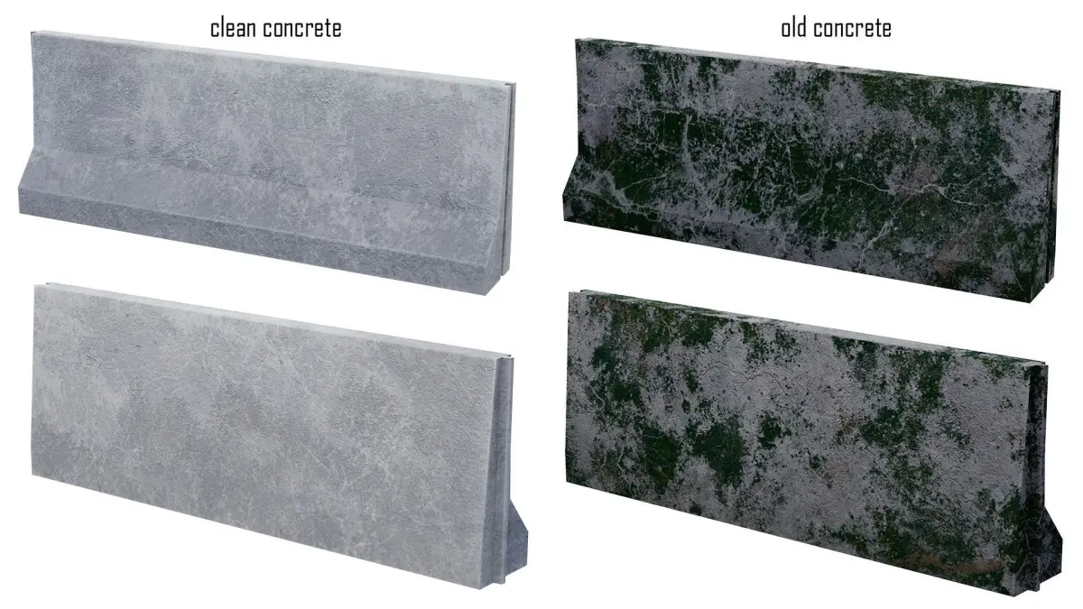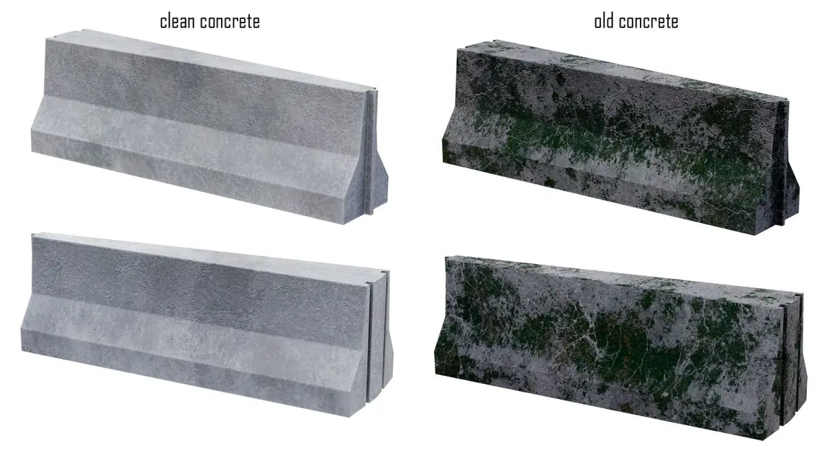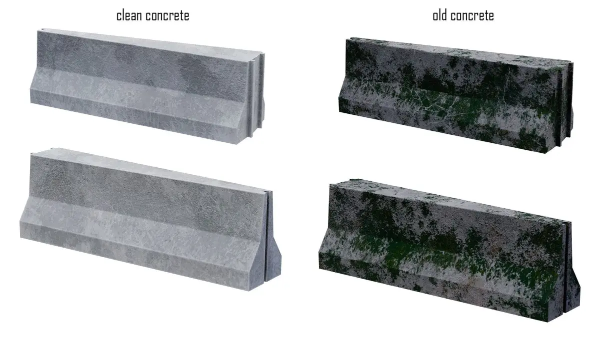 Set includes 11 blocks of road concrete barrier.Set includes 2 variants of texture.