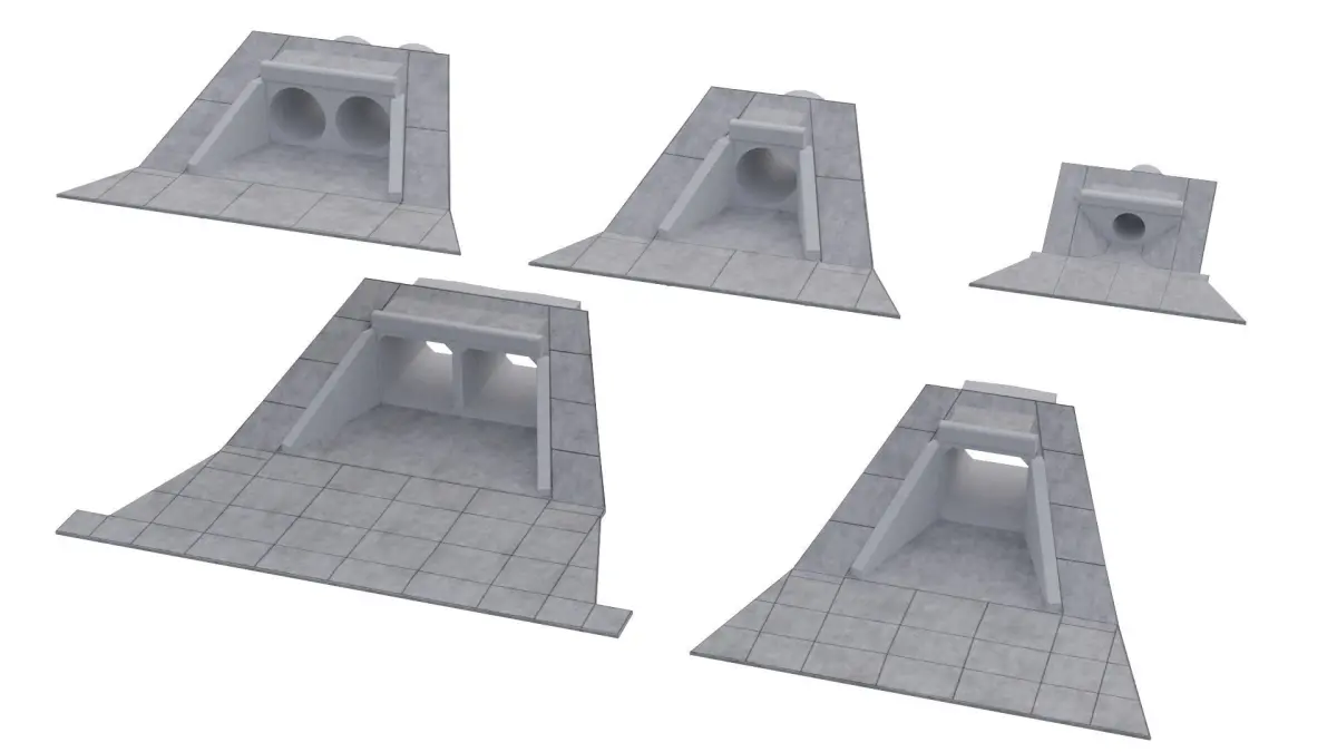 Concrete culverts set. The set includes 5 variants of the concrete culverts, considering the inlet and outlet