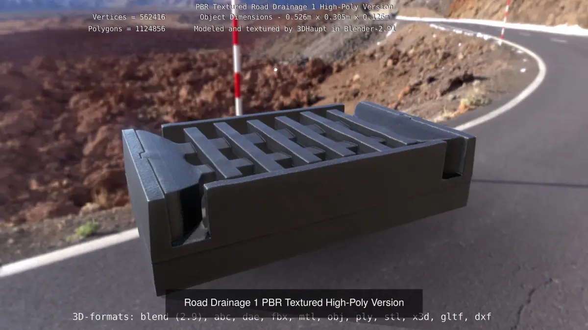 Here is the high-poly and pbr-textured version of road drainage 1.