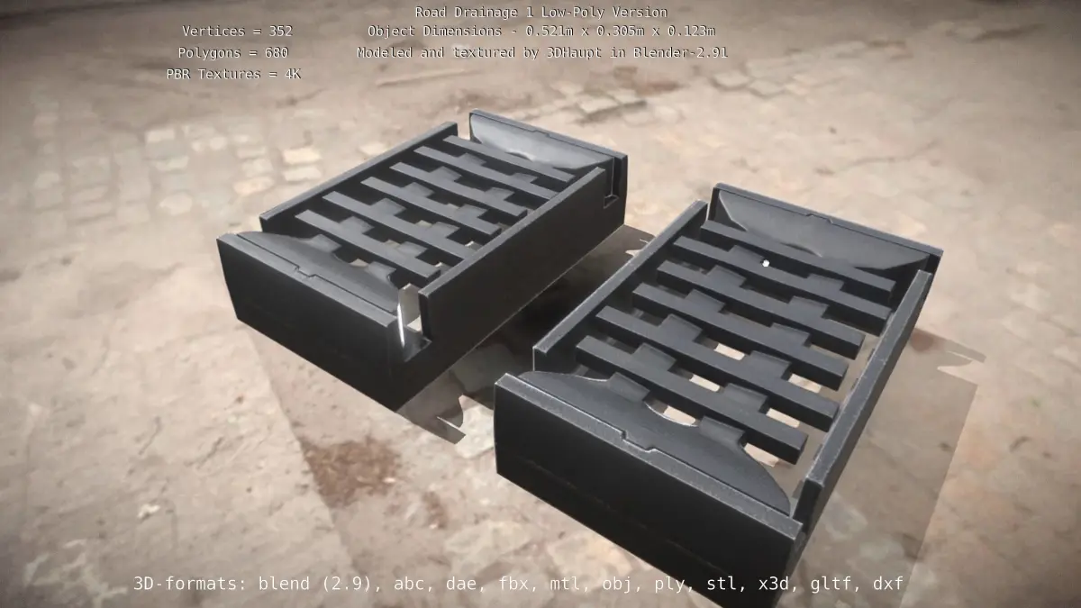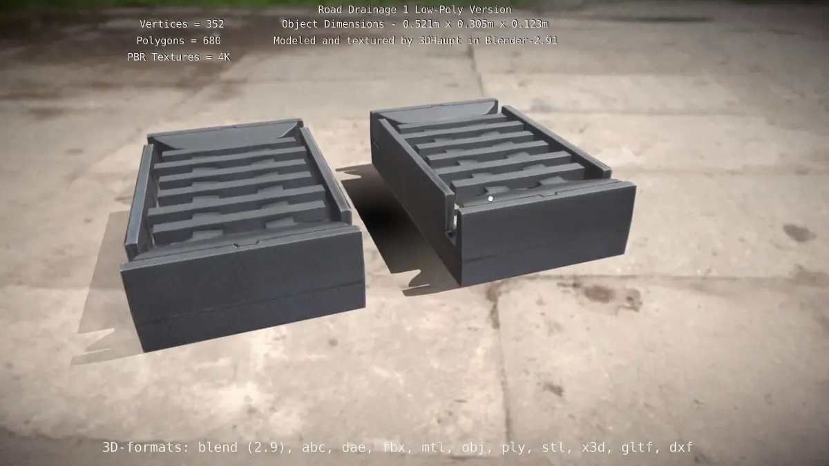 Here is the low-poly and pbr-textured version of road drainage 1.