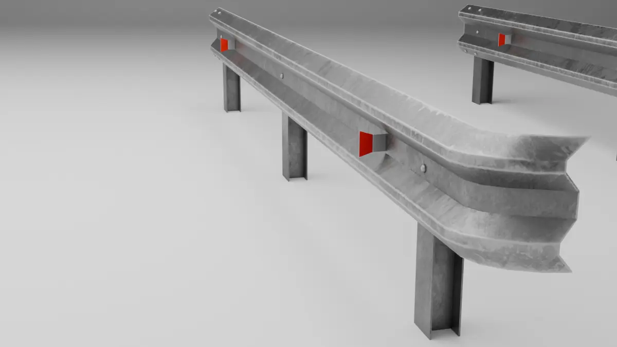 The road fence was modeled in Blender. Cycles render was used to obtain the renders you see above. It is ready to work with your project as you wish. All you have to do is resize it to the size you want.