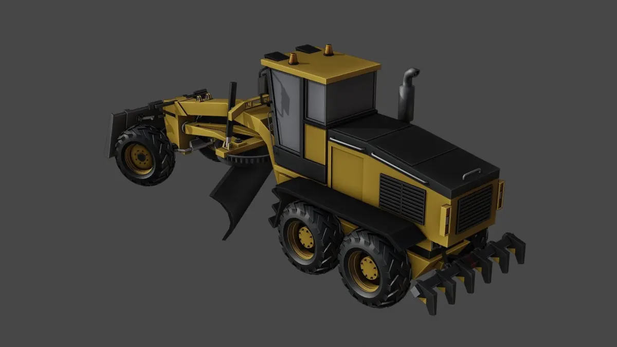 This autograder model is created with an artistic approach rather than strict technical blueprints. It has a visual resemblance to real machinery but is not an exact replica. The model is ideal for use in the gaming industry, multimedia projects, and any other creative work that requires a high-quality and detailed autograder model. The model is made with a high level of detail and includes all major autograder components such as the cab, engine, grading blade, and ripper. All elements have clear resolution and quality, ensuring excellent visualization and realism. The model is available in FBX, OBJ, and MTL formats, making it compatible with most 3D modeling and visualization software.