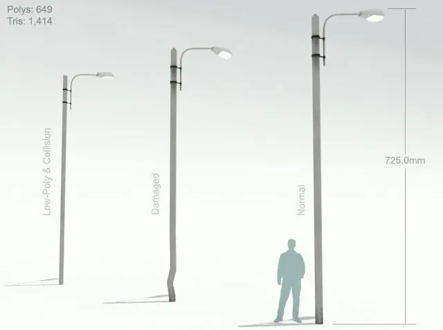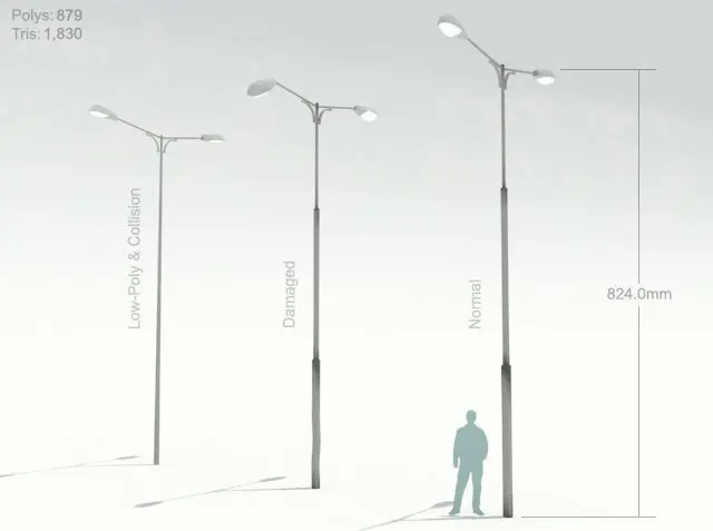 9 pieces, total quantity 27, one pillar contains 3 types, (normal models) - (damaged) - (LowPoly & Collision)