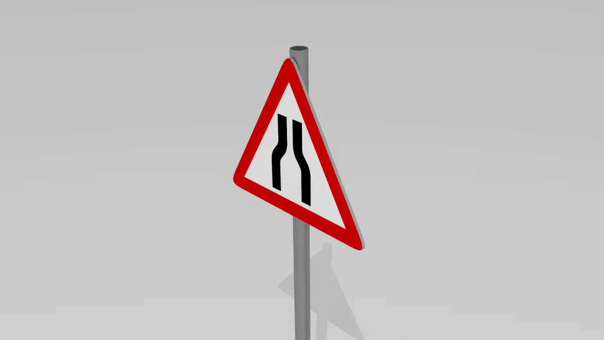 A road narrows sign modeled to specs, with materials and texture applied.