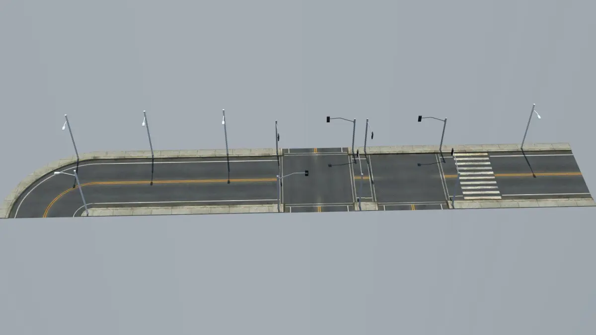 - Contains 5 streets, 1 type light pole, 1 type traffic light.