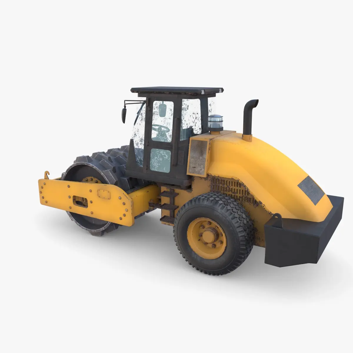 Road roller with detailed interior 3d model rendered with Cycles in Blender, as per seen on attached images. The model is scaled to real-life scale.
