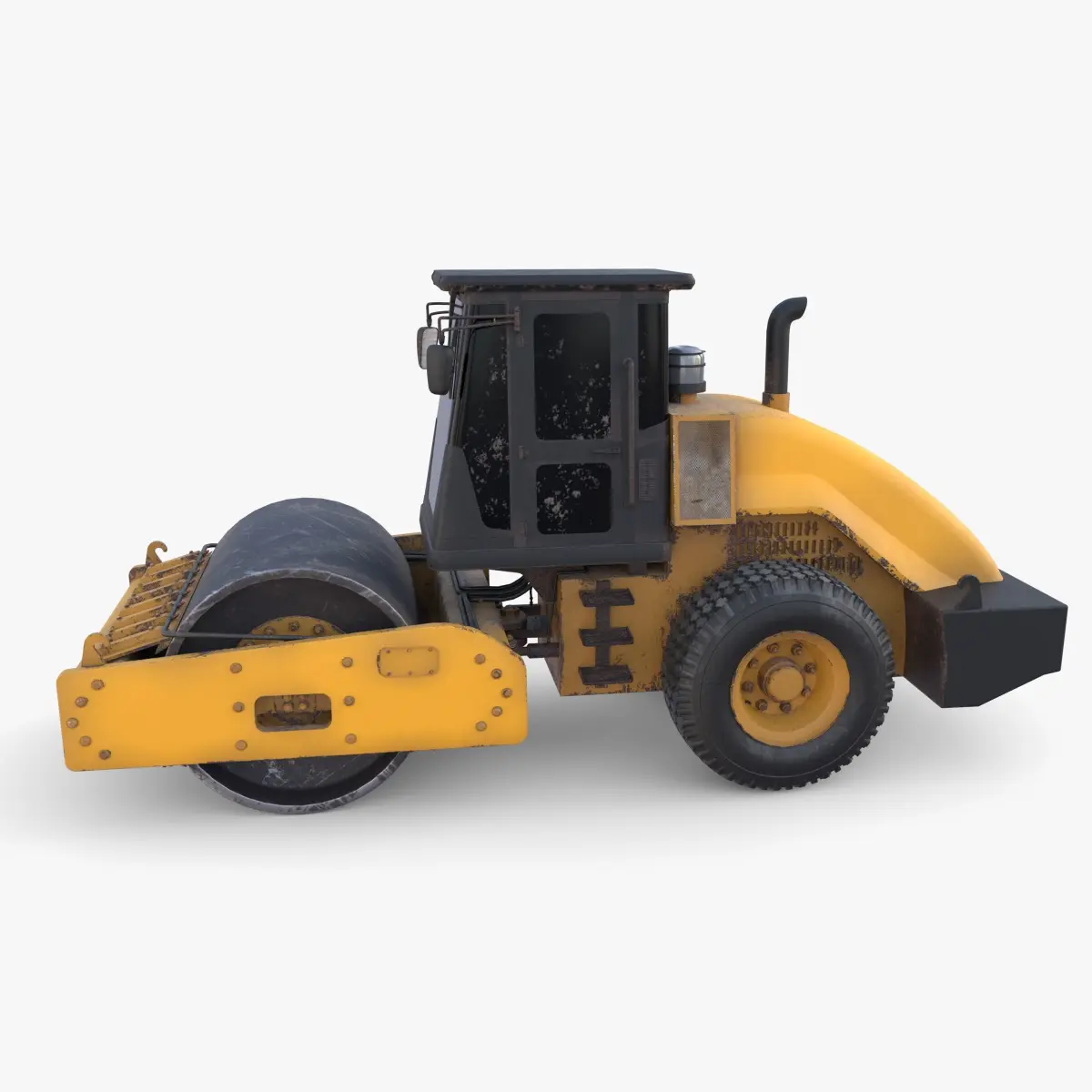 Road roller 3d model rendered with Cycles in Blender, as per seen on attached images. The model is scaled to real-life scale.