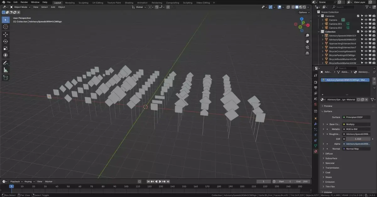 - Demo blend file included with all road signs laid out