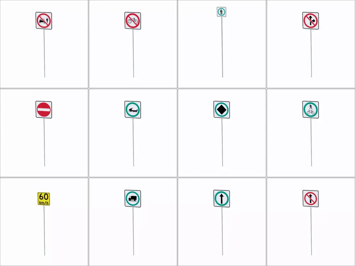 - All 94 road sign models have been exported in FBX, OBJ, GLTF/GLB, DAE/Collada file formats