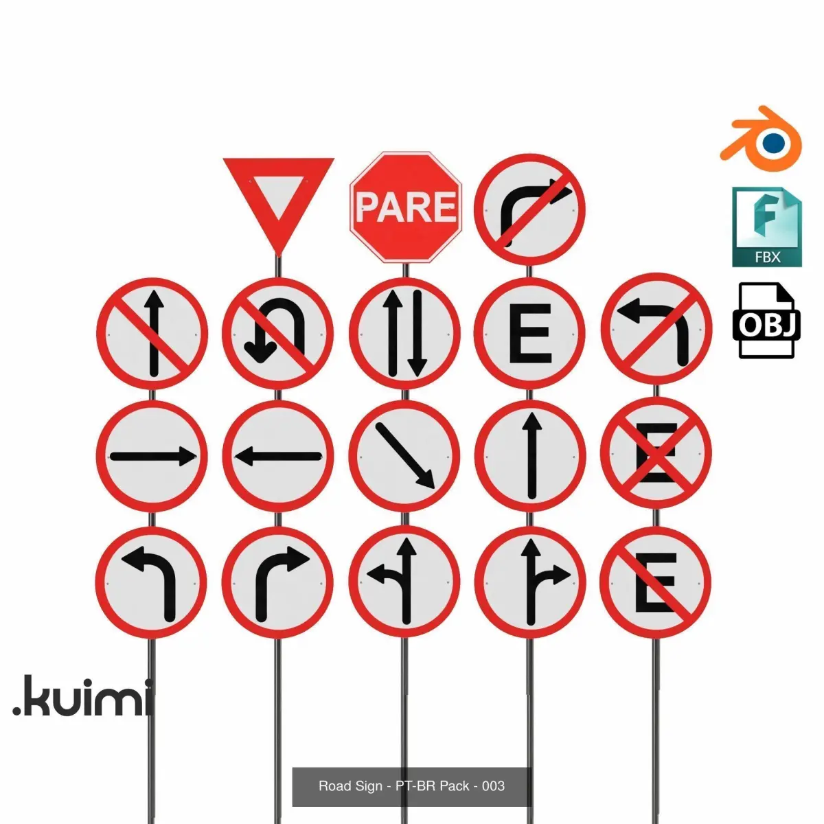 This collection includes 15 brazillian advertence road signs, 9 Km/h speed limit road sign and 18 brazillian regulamentation road signs. All the models included are PBR.