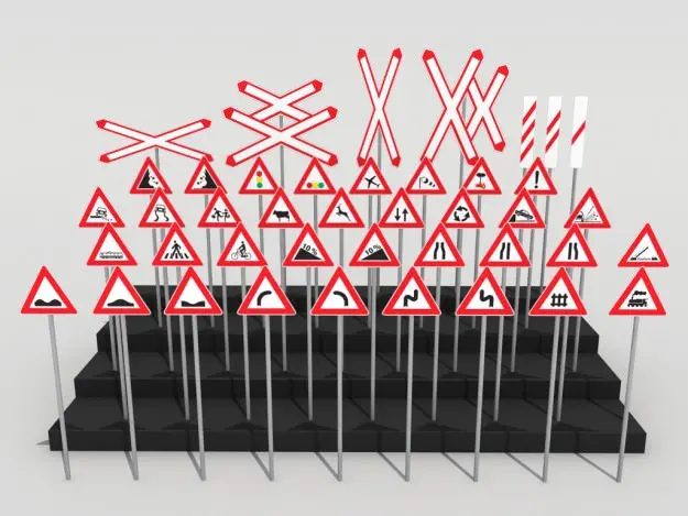 Collection of 42 high detailed 3D road signs.