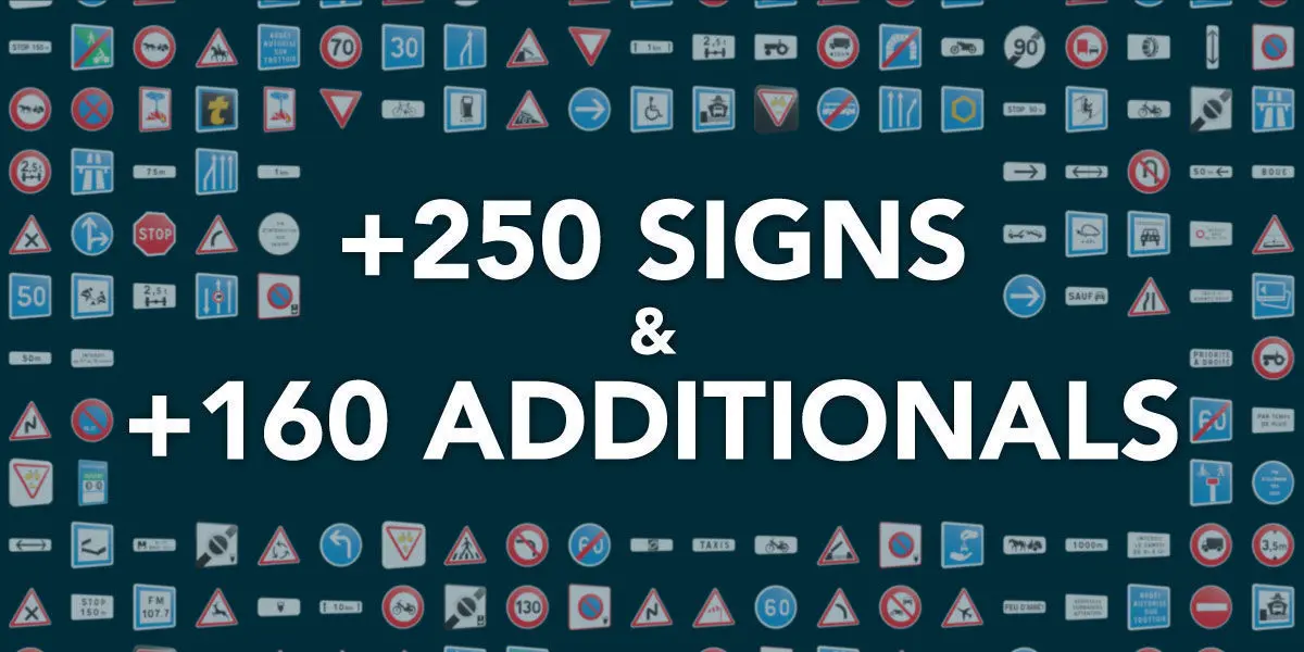 SIGNS :Sign designs comply with French road signs regulations.All sign structures and their dimensions are based on official regulations and manufacturer catalogs.This pack provides access to 259 signs and 167 additional signs, totaling over 1300 assets (including dimension variations, props, and presets).