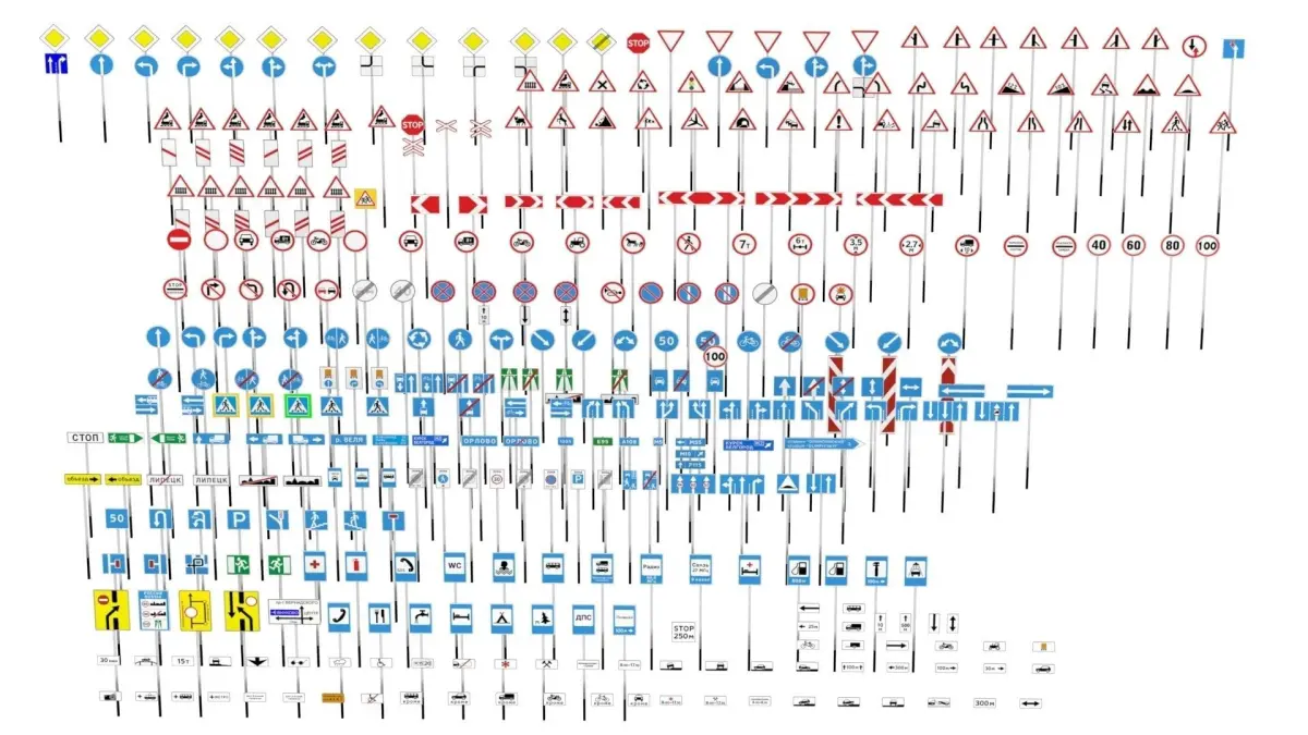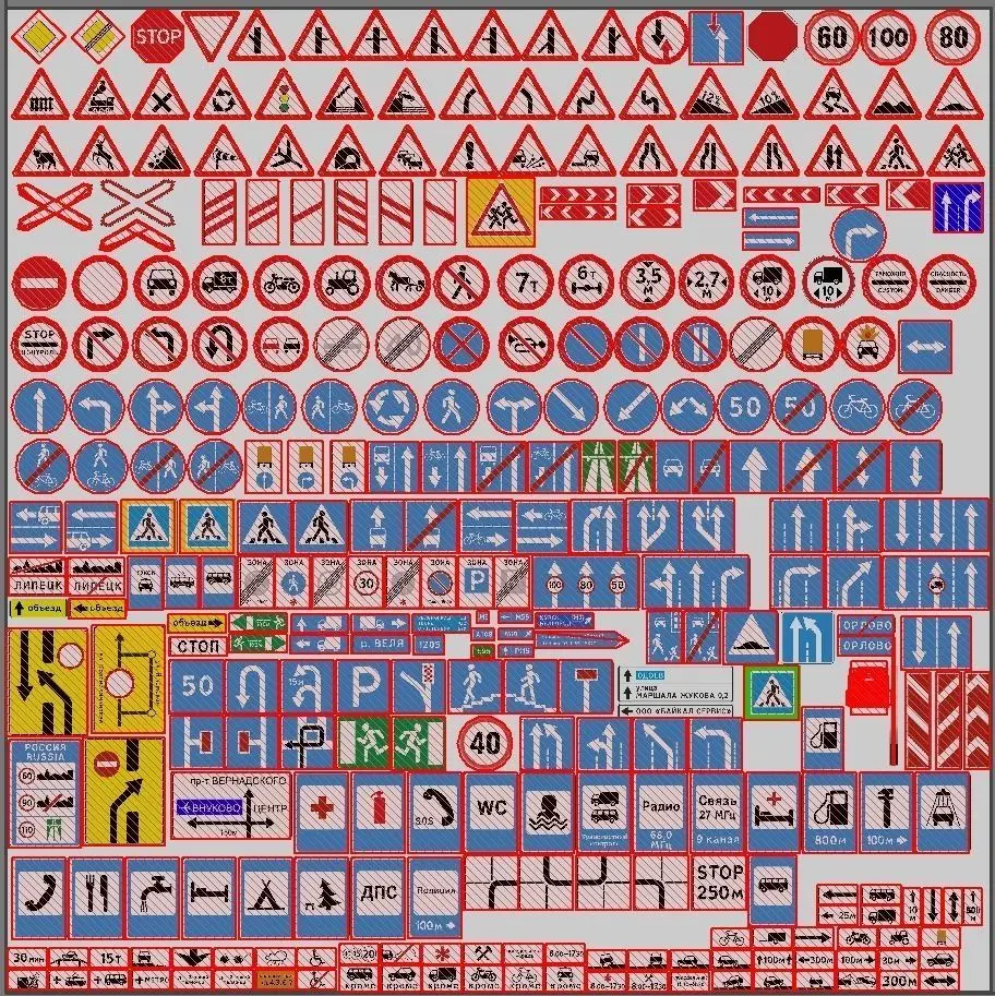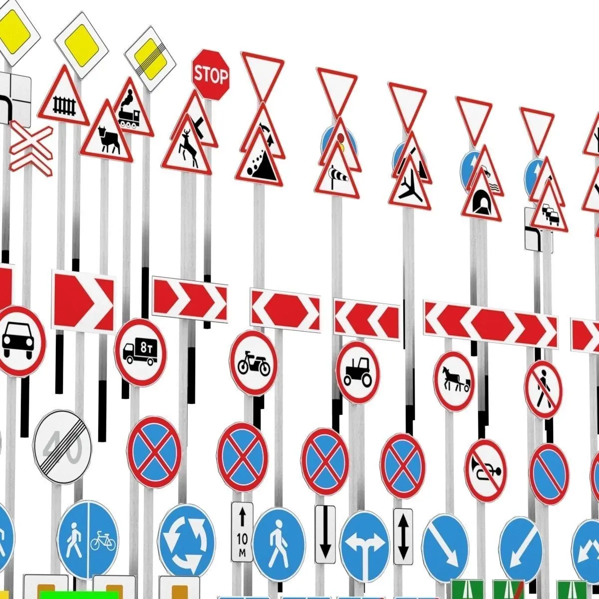 - original file format - 3d max 2014* -all have names for purposes-the coordinates Z=01) Signs_priority: 28 pc2) Signs_Warning: 57 pc3) Signs_Prohibition: 41 pc4) Signs_Mandatory: 27 pc5) Signs_Special regulation: 65pc6) Signs_Information: 36 pc