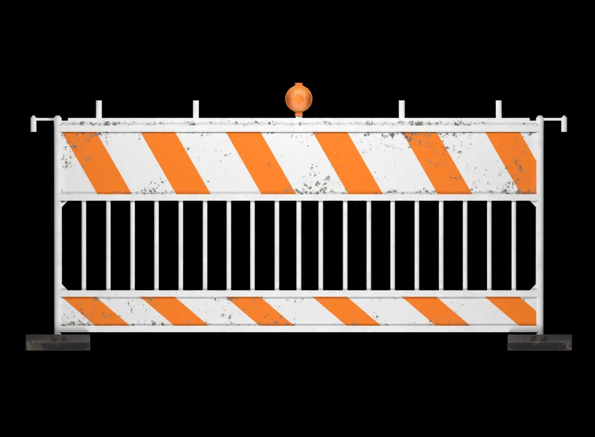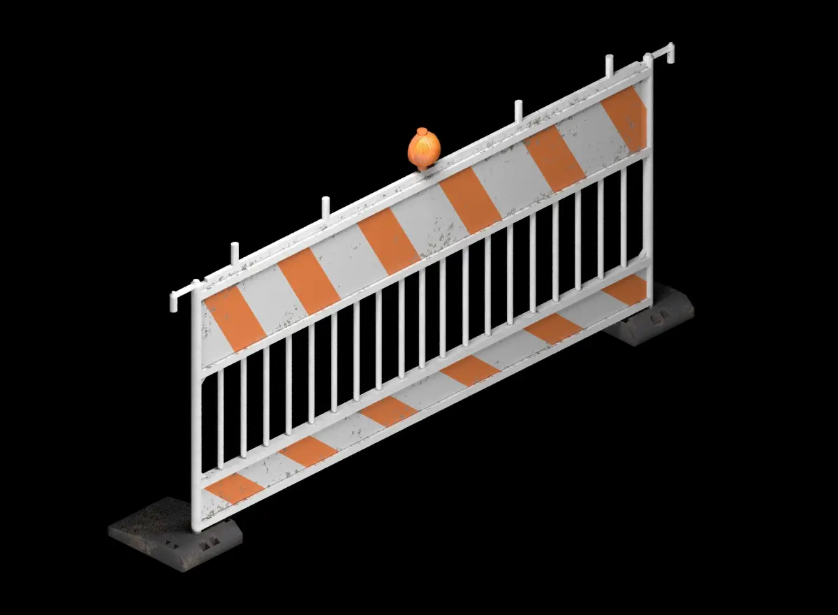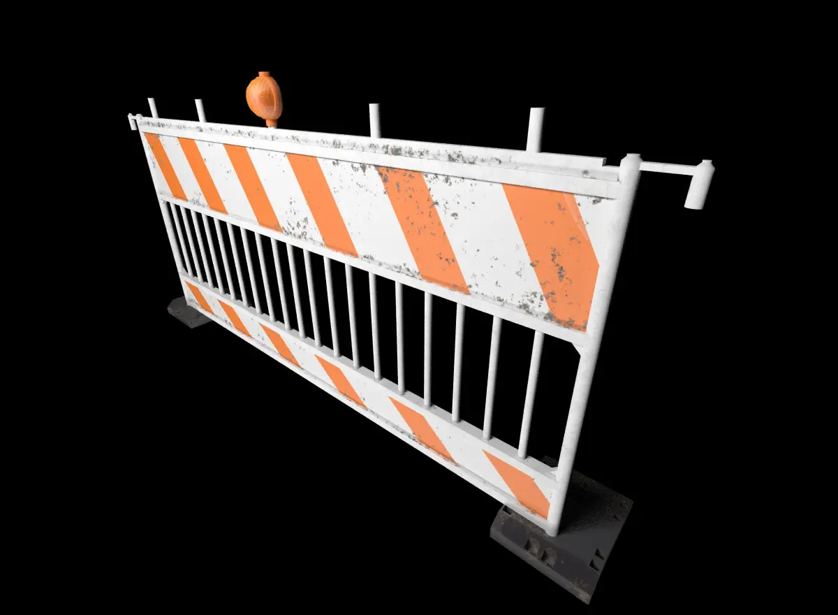 Realistic Low-poly model of road traffic barricade with high quality PBR textures (4096x4096). Rendering in V-ray.