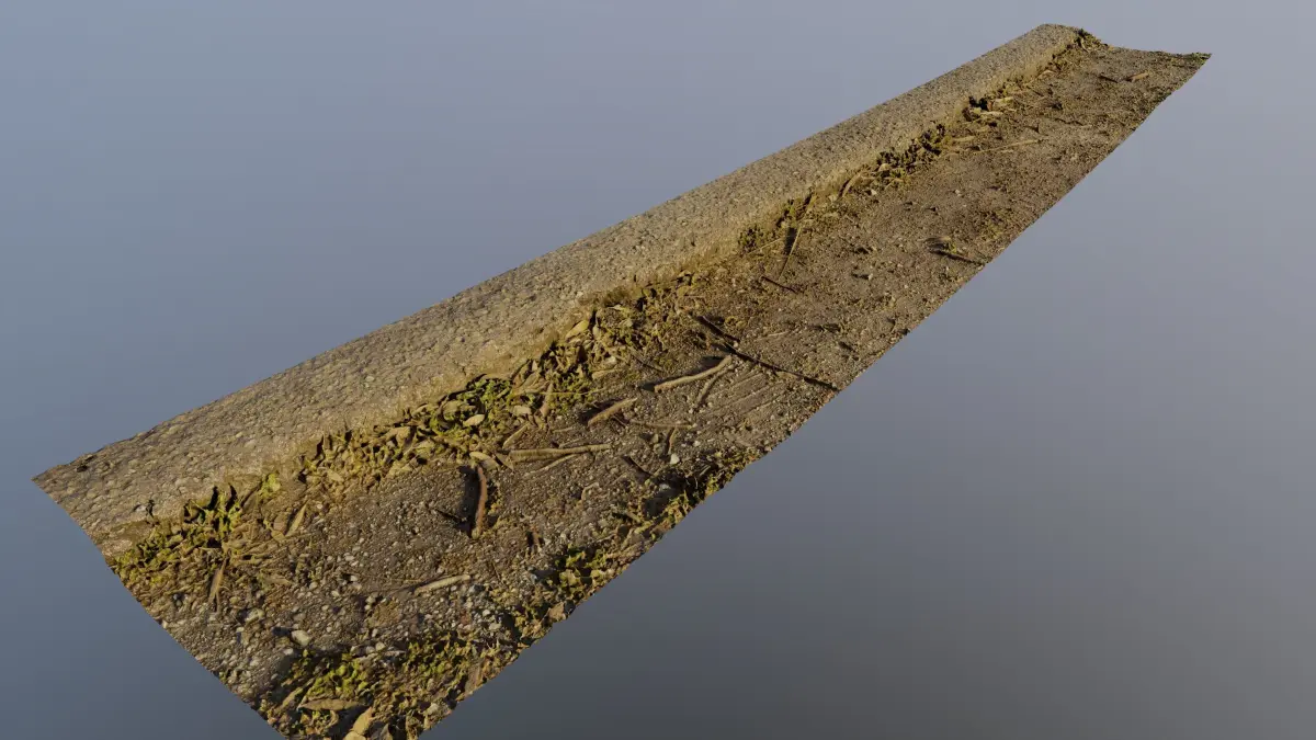 3d Photoscanned edge of Asphalt road.Model contains an asphaltroad to dirt edge, highly detailed photoscanned. Good for baking out tiling textures from or to use as hi detail reference or render geometry. Included textures are:AlbedoAODetail Normal