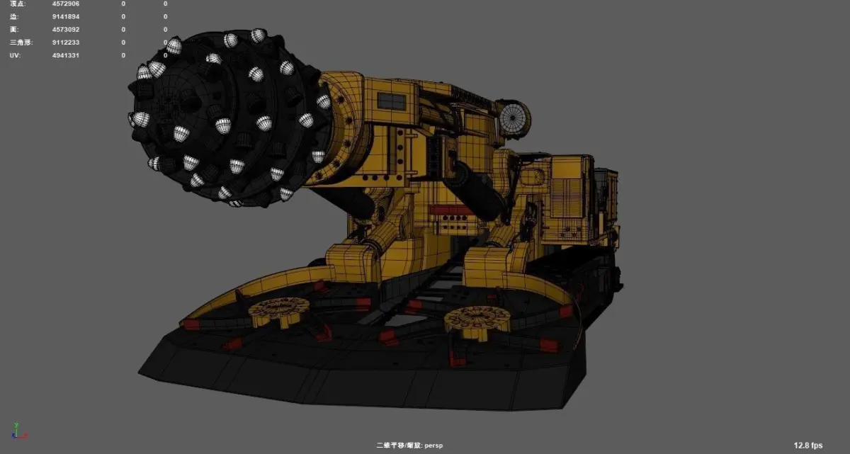 一台掘进机,没有进行UV展开,使用简单的阿诺德标准颜色材质进行渲染,我一共花费7天的时间制作了这个模型,它可以使用平滑预览,因为它已经进行了倒角卡边.A roadheader, no UV unwrapping, rendered with a simple Arnold standard color material, I spent 7 days making this model, it can use smooth preview because it has chamfered card edges.