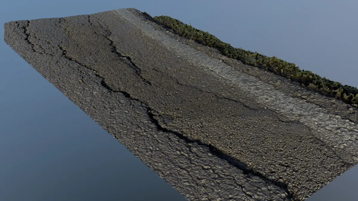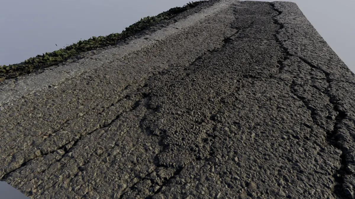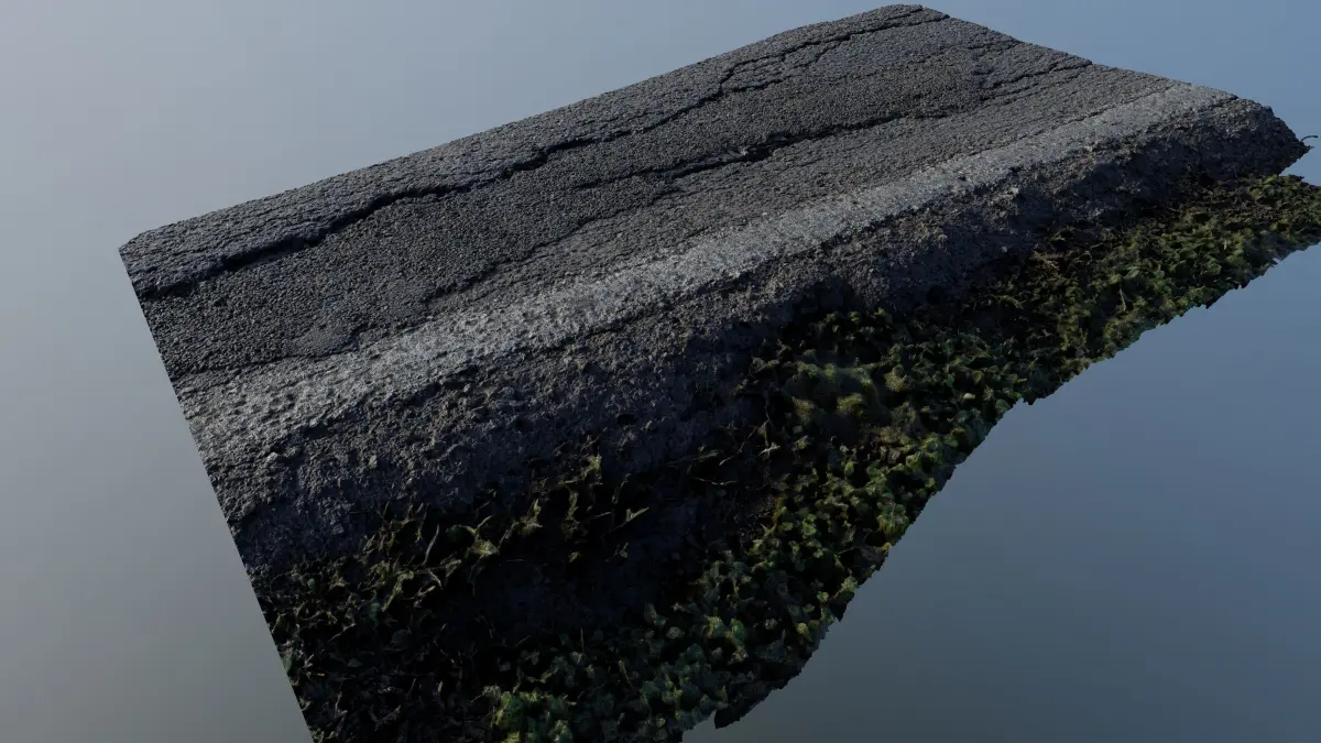 3d Photoscanned edge of Asphalt road.Model contains an asphaltroad to dirt edge, highly detailed photoscanned.Polygons: 11239091Vertices: 5838391Good for baking out tiling textures from or to use as hi detail reference or render geometry.Included textures are:AlbedoAODetail NormalRoughnessSSS