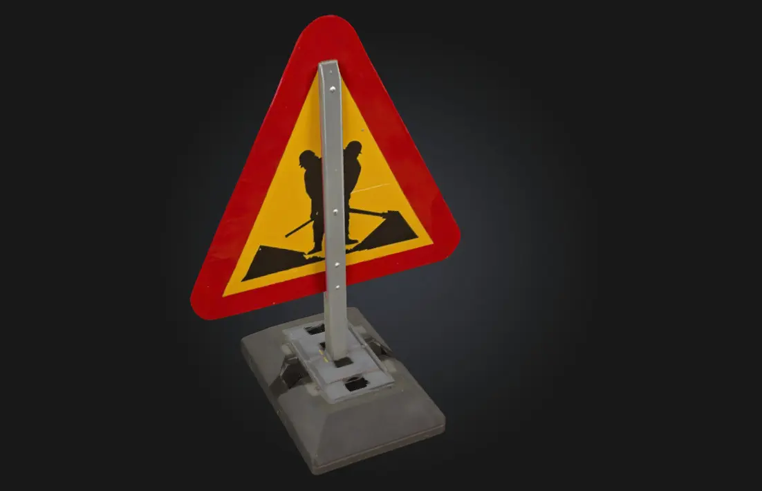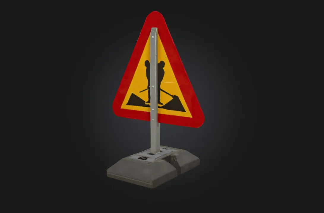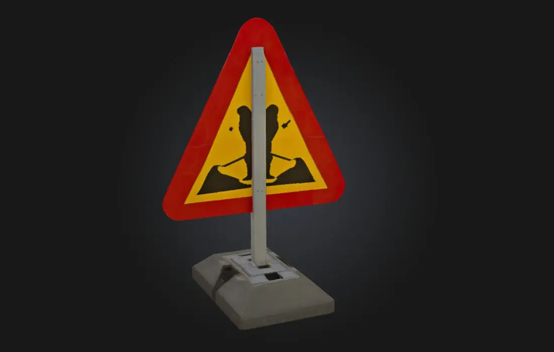 Roadwork Ahead Sign is a high-detail 3D model of a standard cautionary traffic sign used to indicate upcoming construction zones Perfect for city environments, highway setups, or driving simulations