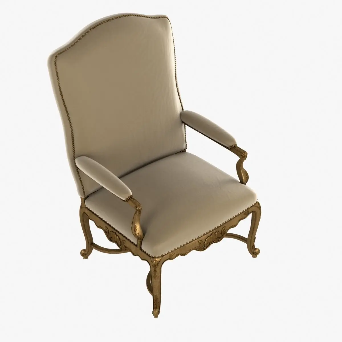 Luxury historic armchairhigh back, curved arms and legs,patina gold finishbrass nailhead buttonshand crafted