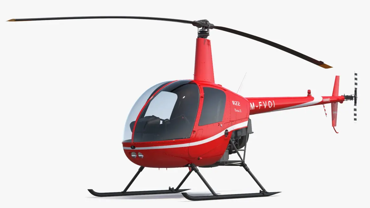 This helicopter model features a sleek, aerodynamic design with a compact frame and twin blades for enhanced maneuverability. The R22 Beta II is equipped with a powerful engine, providing excellent performance for a wide range of flight conditions. Its cabin offers comfortable seating with a panoramic view, making it perfect for training or leisure flights.