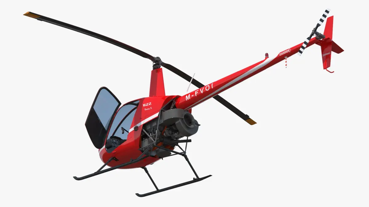 Robinson R-22 Compact Rotorcraft Red Rigged for Maya is a 3d model of a light utility helicopter, ideal for both personal and professional use, known for its efficiency and reliability.